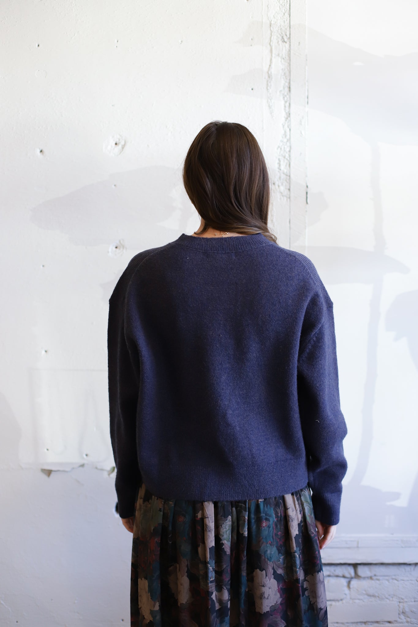 This classic sweater is a great staple for any closet! This deep plum colored sweater features a seam detail around the round neck cut, as well as a slight high-low design letting the sweater hang a little longer in the back!