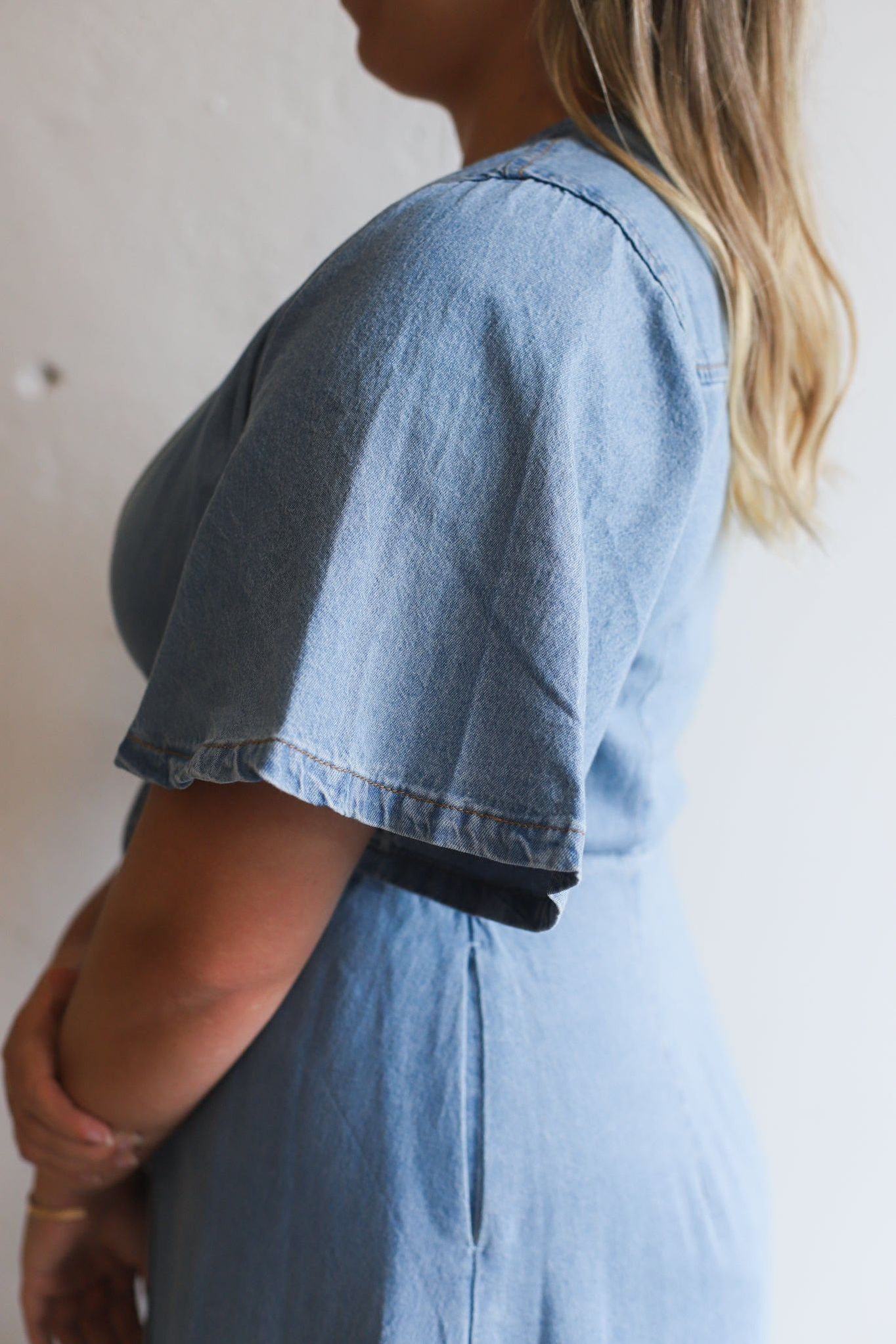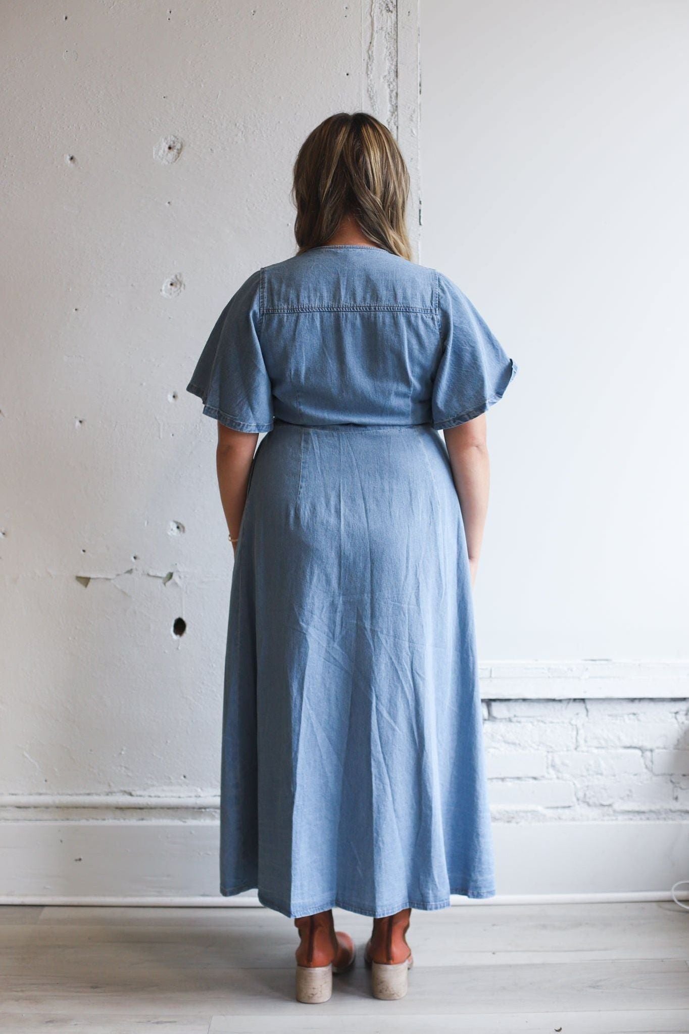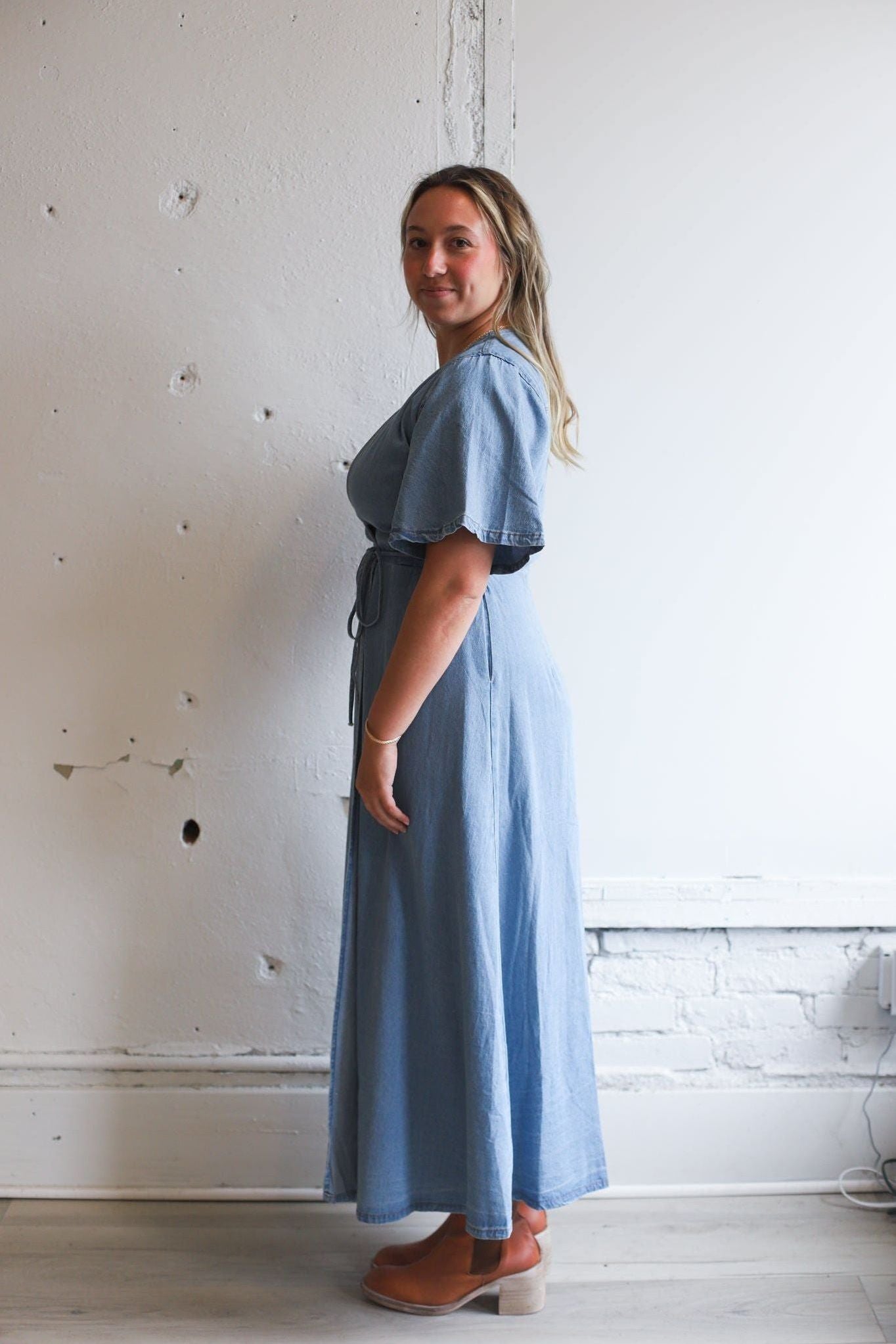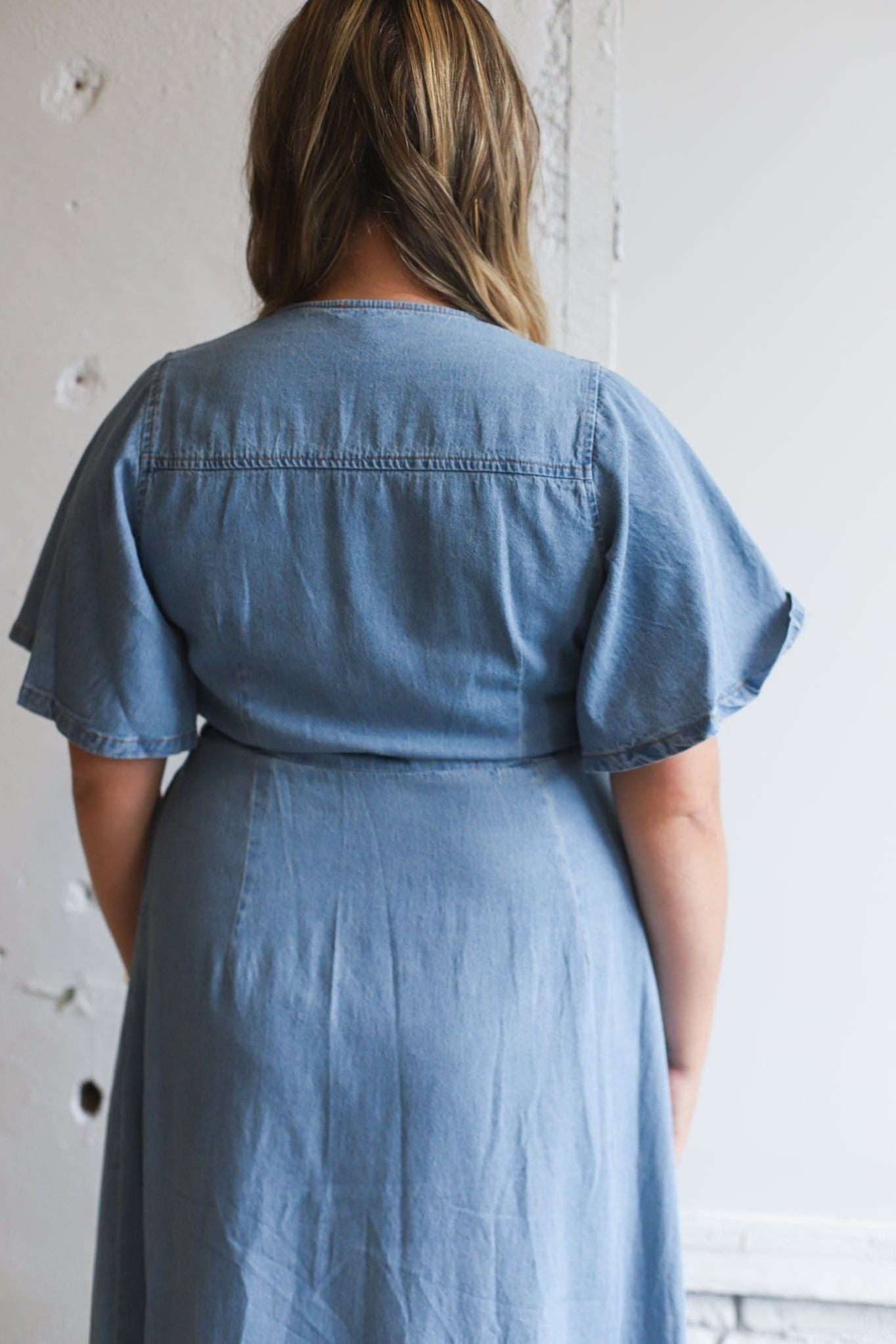 WASHED DENIM WRAP DRESS! A perfect piece for transitioning into cooler weather--pair with your favorite boots or cardigan!