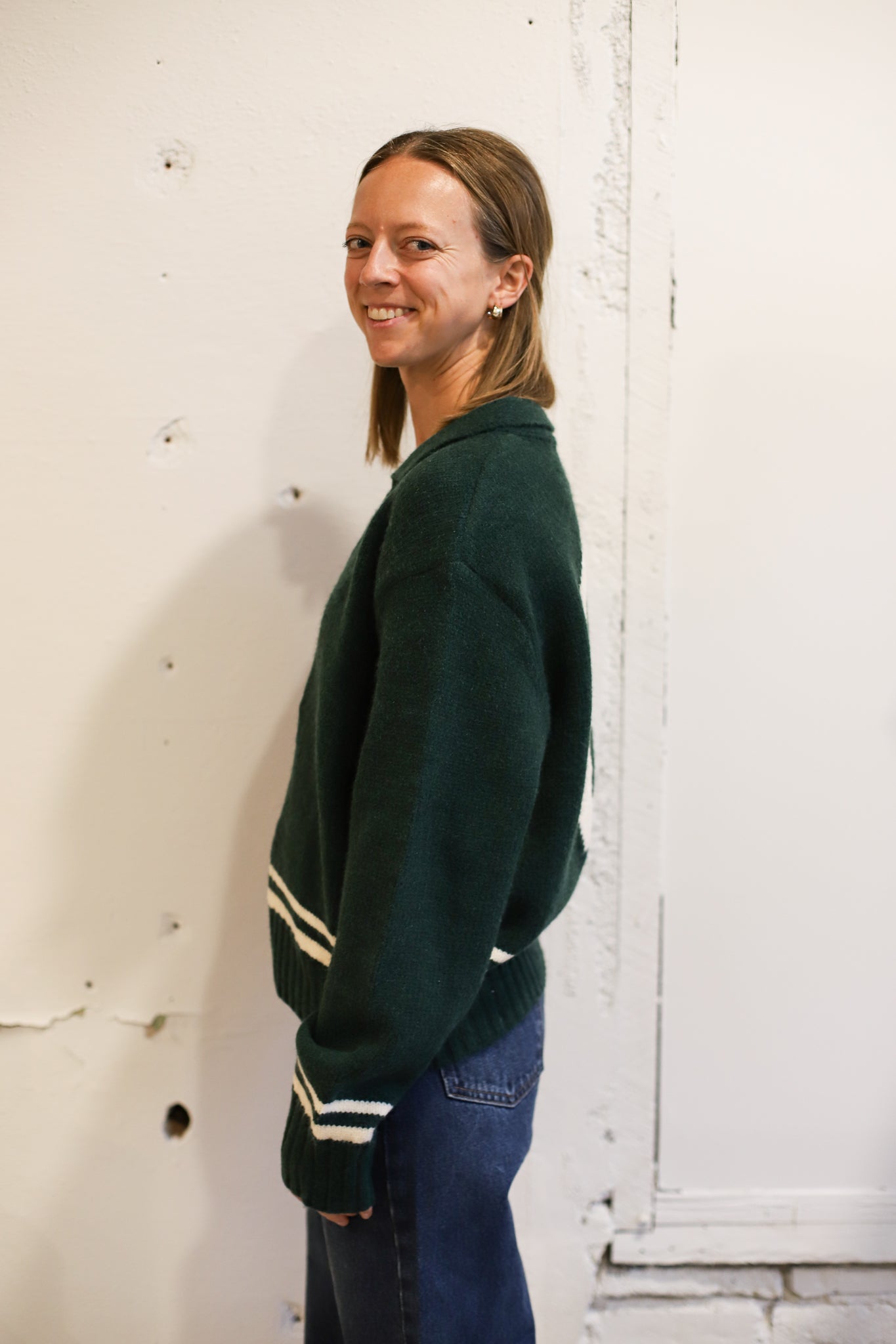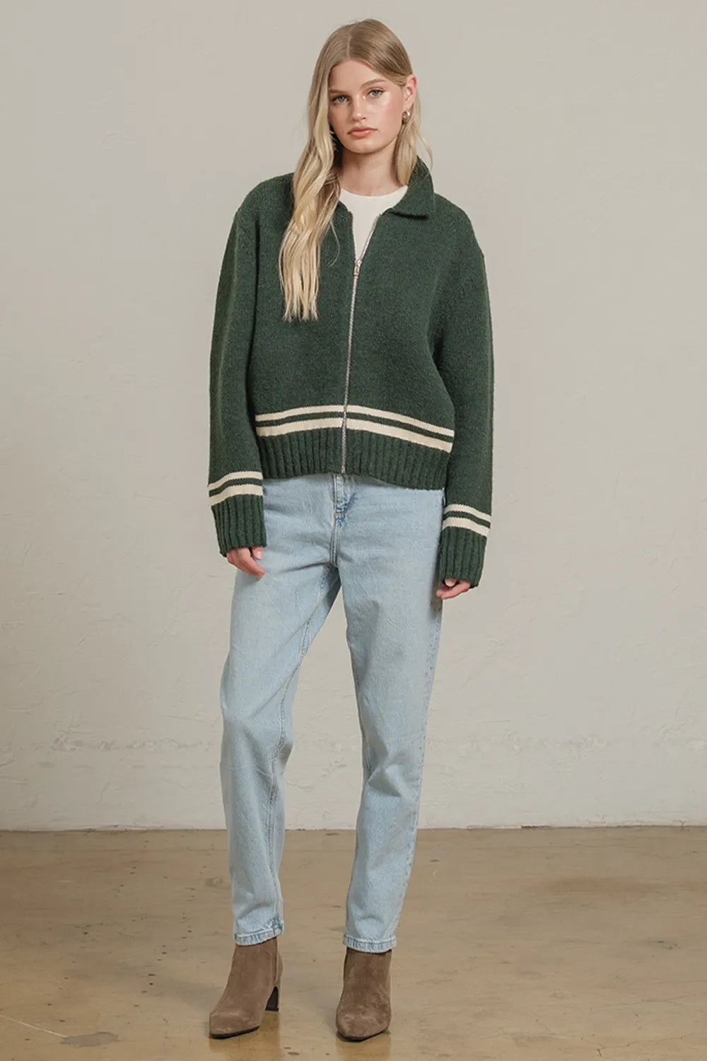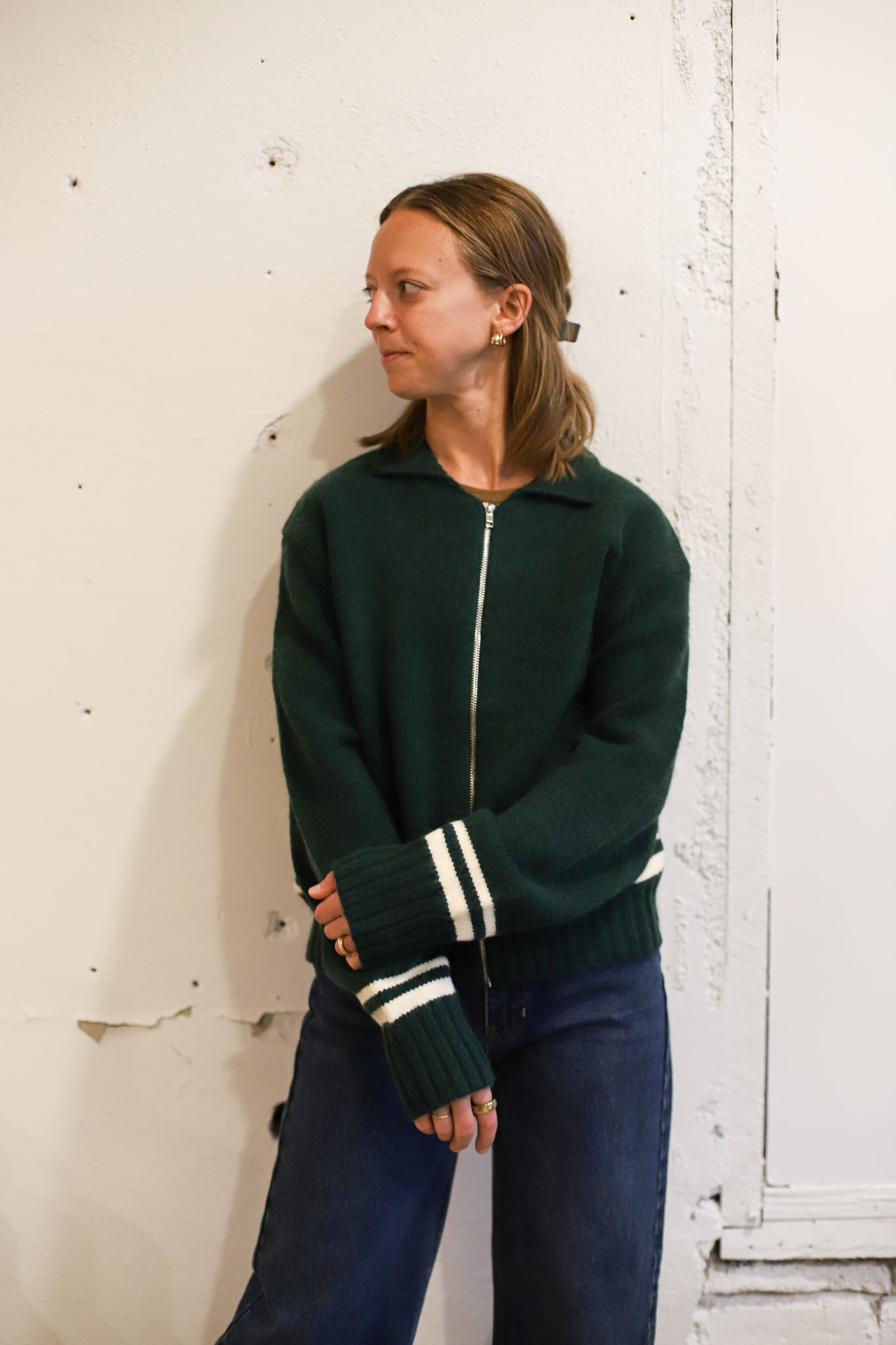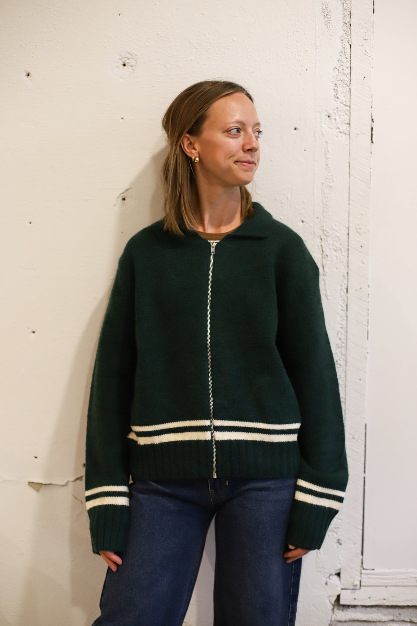 Add a retro-sporty vibe to your shop floor with this varsity-inspired knit zip-up jacket.