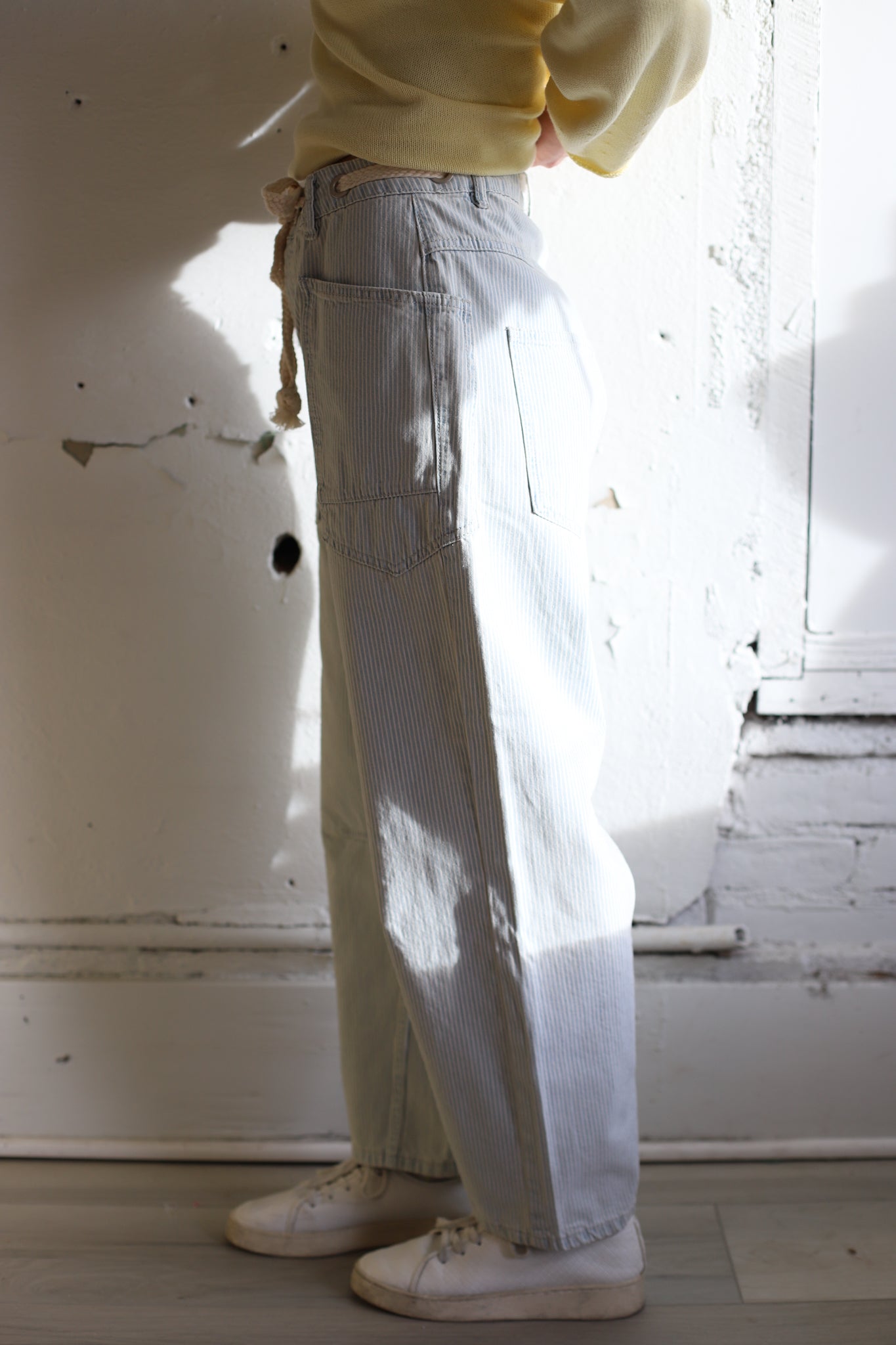 The Harbor Denim Pants are the perfect unique pair of pants! They feature a tapered barrel silhouette and slouchy fit! Along with corded drawstring, eyelet waist, crop length, and deep pockets!