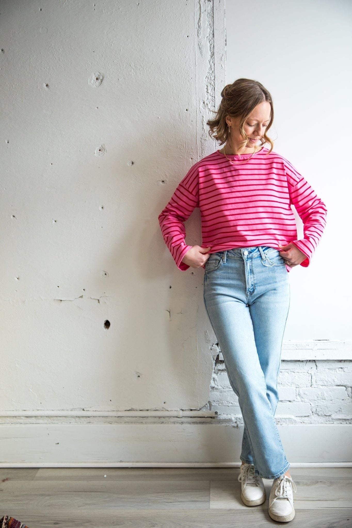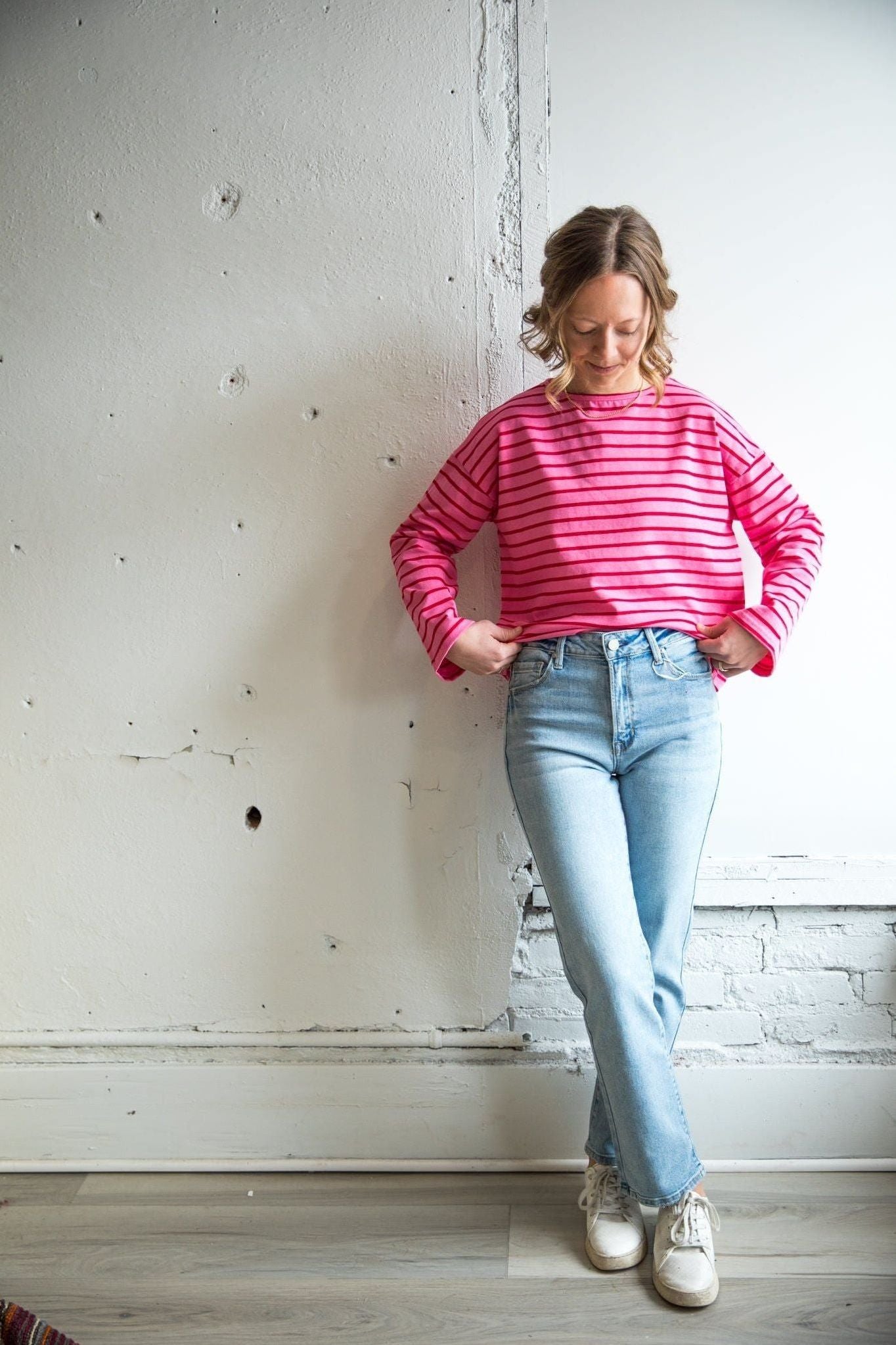 A stretch denim jean with a curve defining high rise now available in a retro medium wash. Featuring clean details and hem master the iconic straight leg look from the 90’s with one simply wardrobe addition.