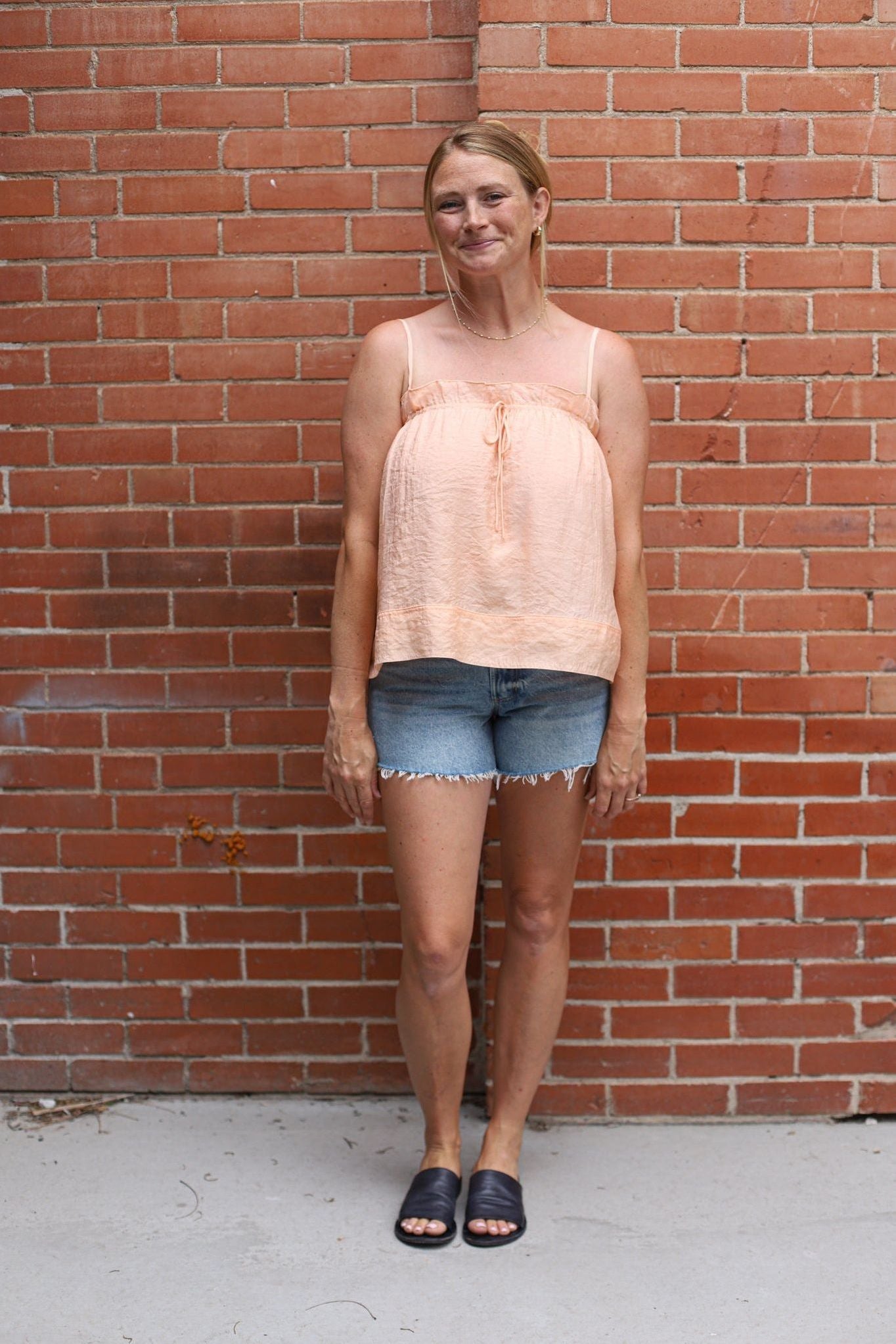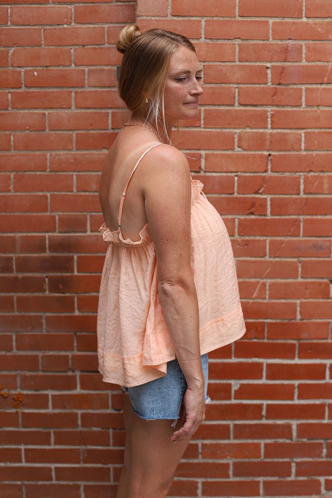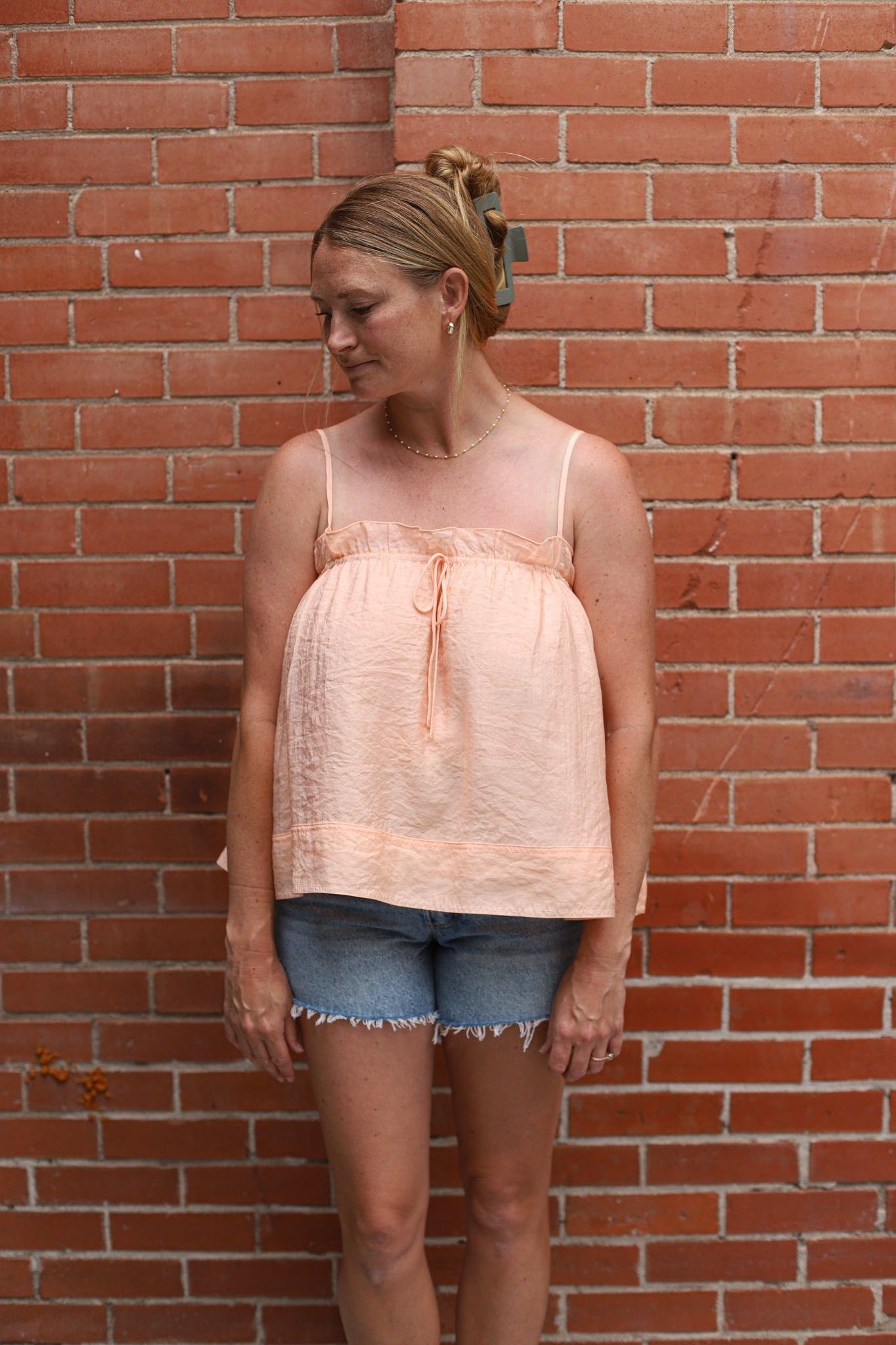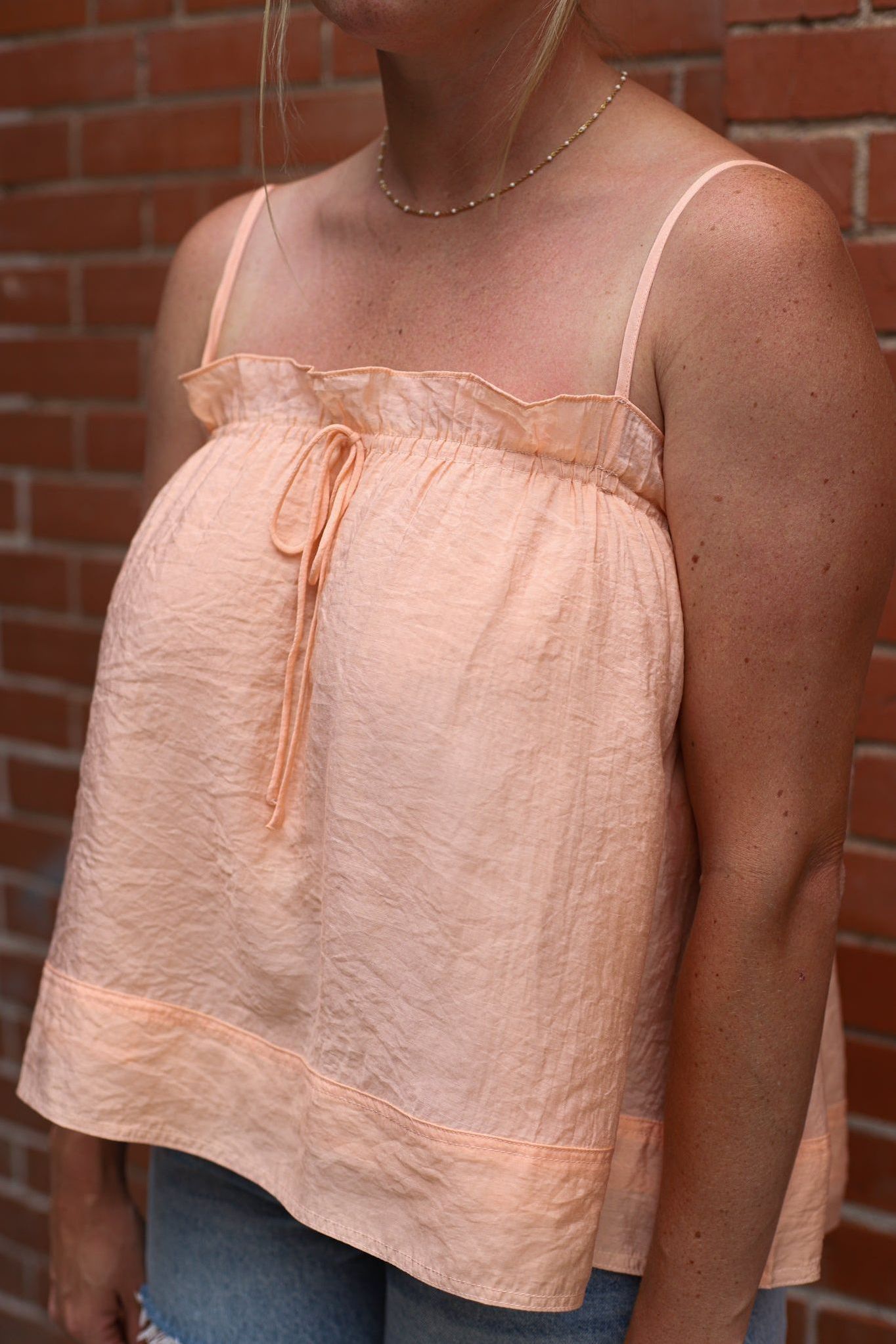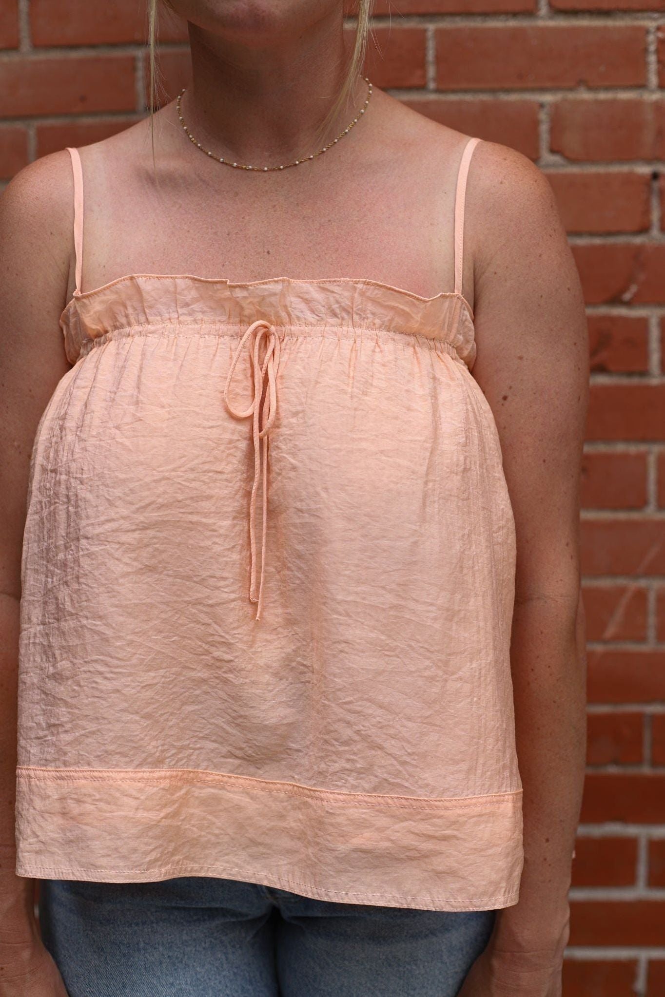 This relaxed spaghetti strap top combines simplicity with charming details. Designed with a gathered neckline and delicate bow tie accents, it's an effortless piece for casual styling. The lightweight material and flowy fit ensure comfort and versatility, making it perfect for sunny days and laid-back outings.
