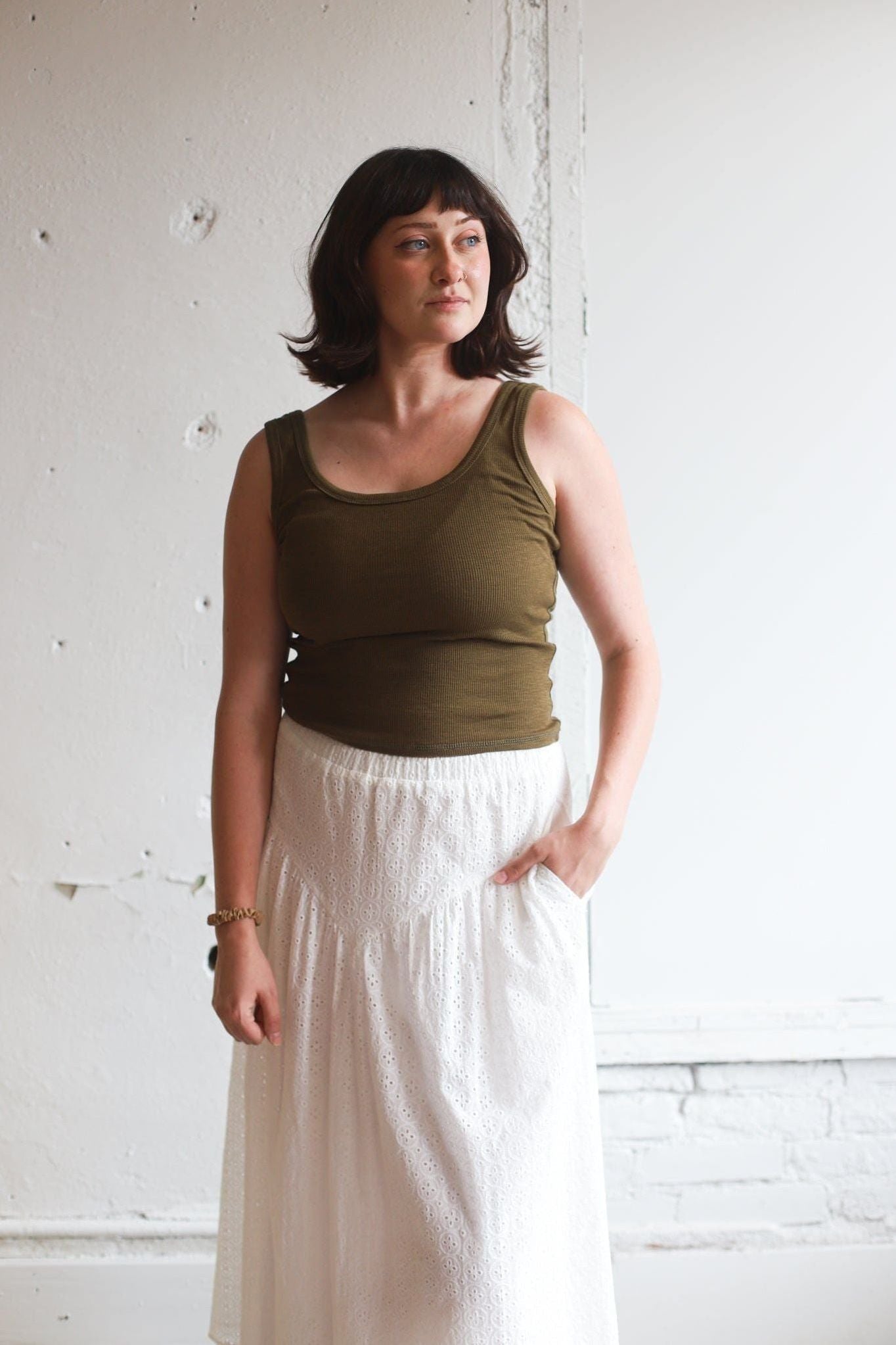 Immerse yourself in the ultimate luxury of ready-to-wear fashion with the Quinn Tank by By Together. This ribbed knit, sleeveless top is your perfect companion for everyday casual wear. It boasts a contemporary fit with a charming scoop neck design. Crafted with a comfortable blend of 92% cotton and 8% spandex, it's ideal for the Fall/Winter season. To maintain its quality, hand wash is recommended.