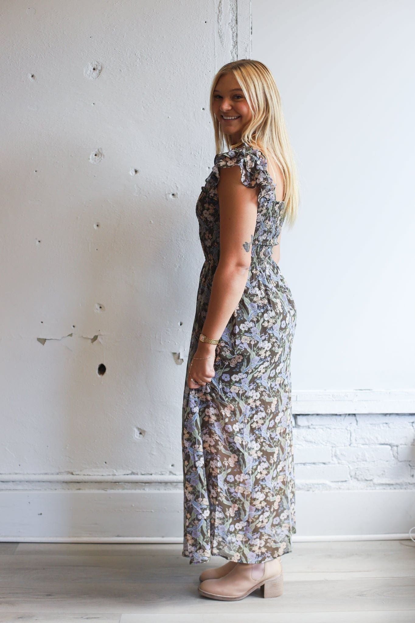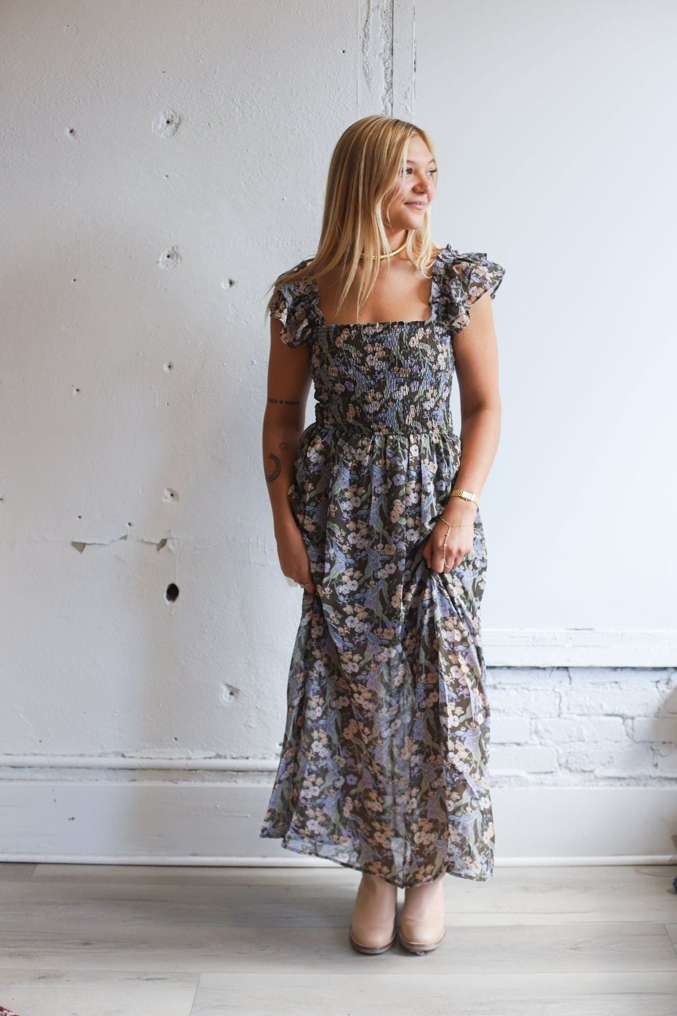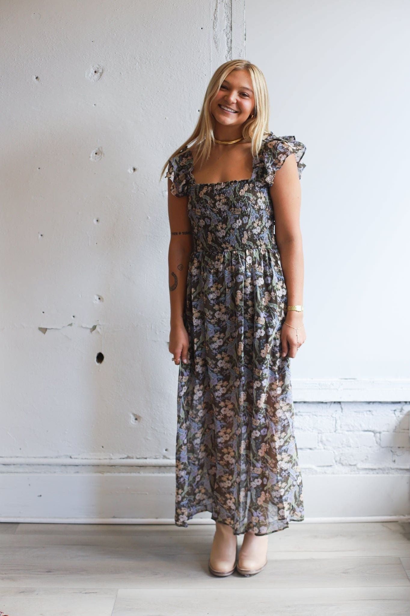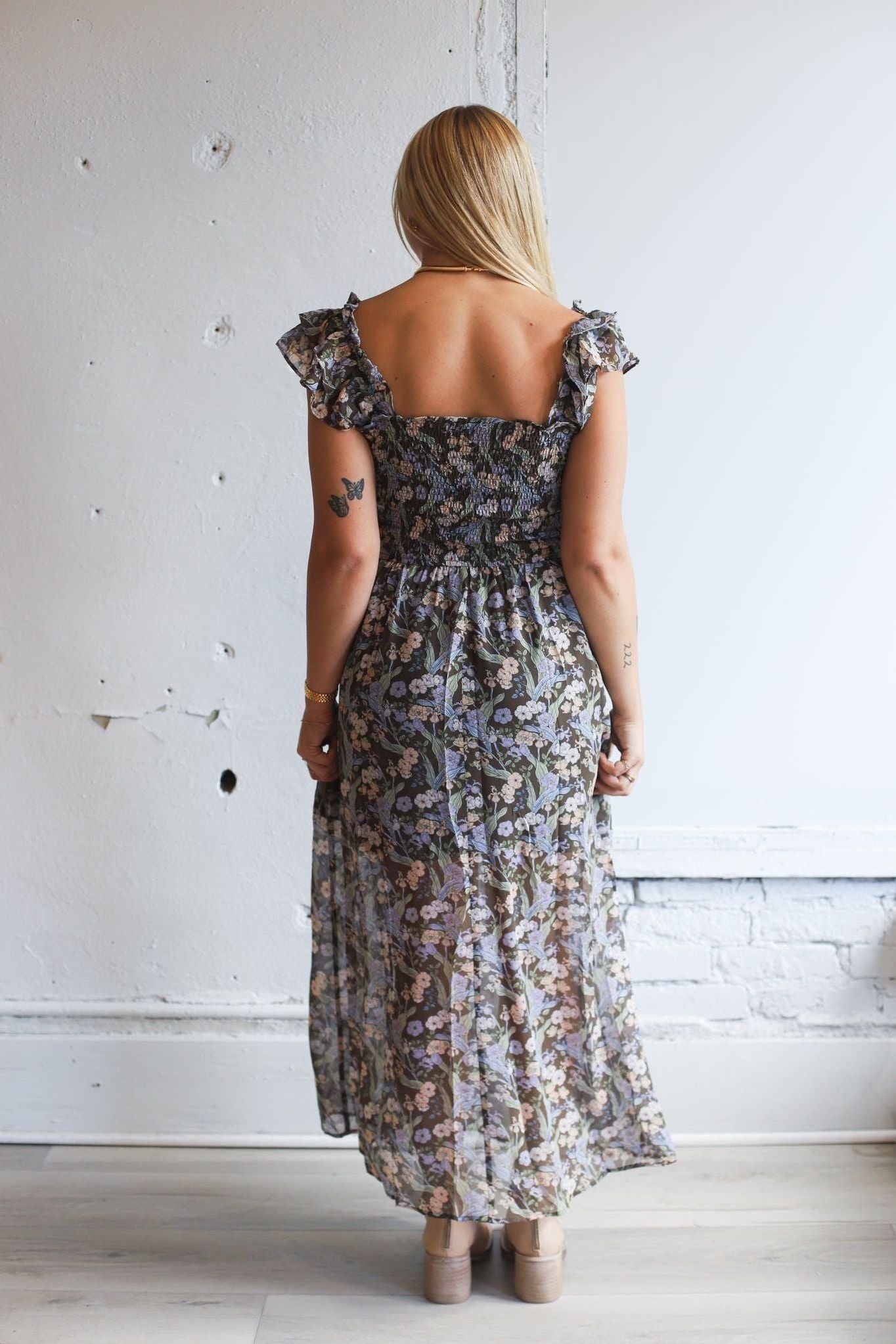 A floral-print satin maxi skirt with the following features: Bias-cut fabric. Elastic waist. Straight silhouette. Ankle length. Relaxed fit.