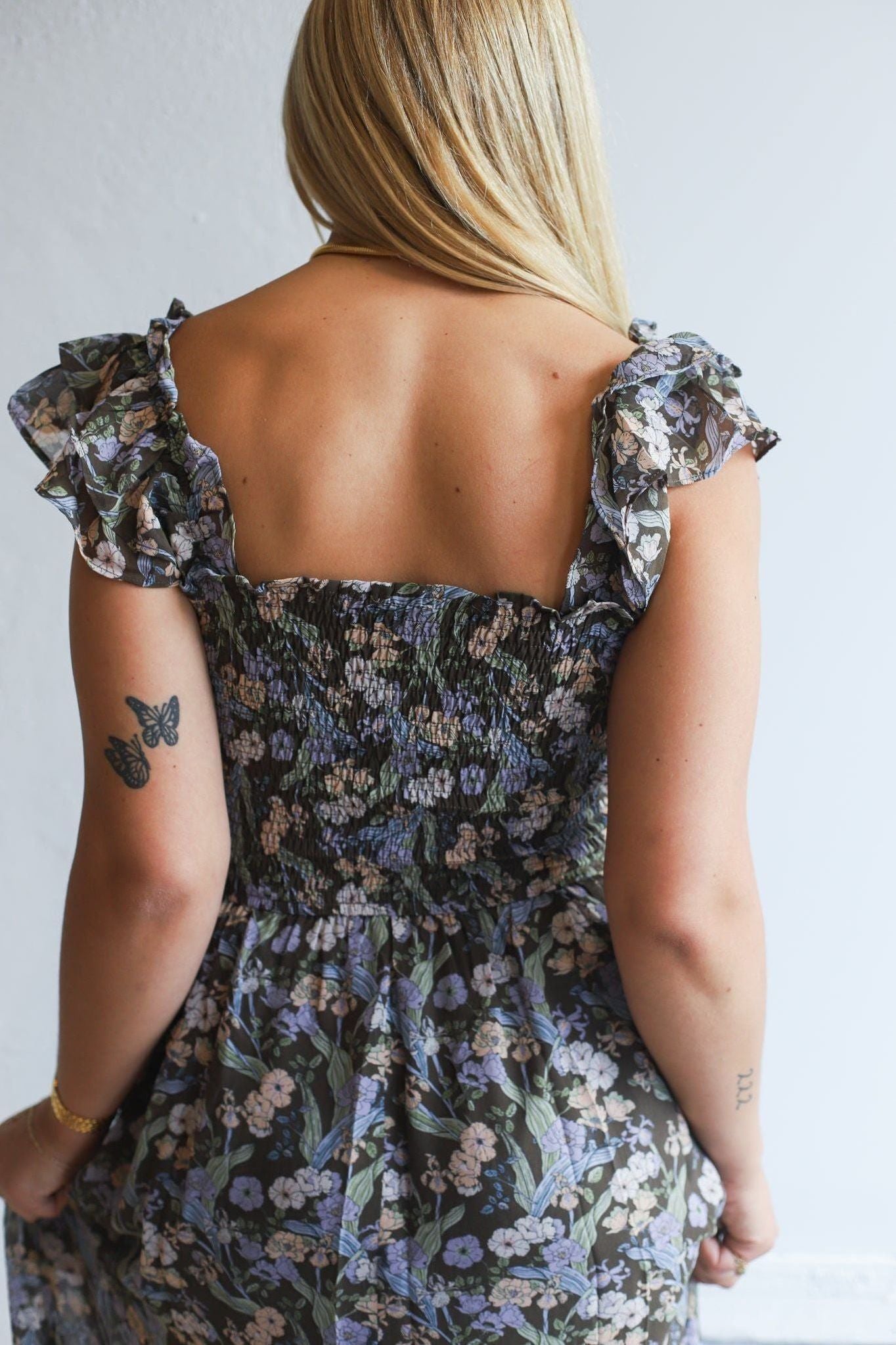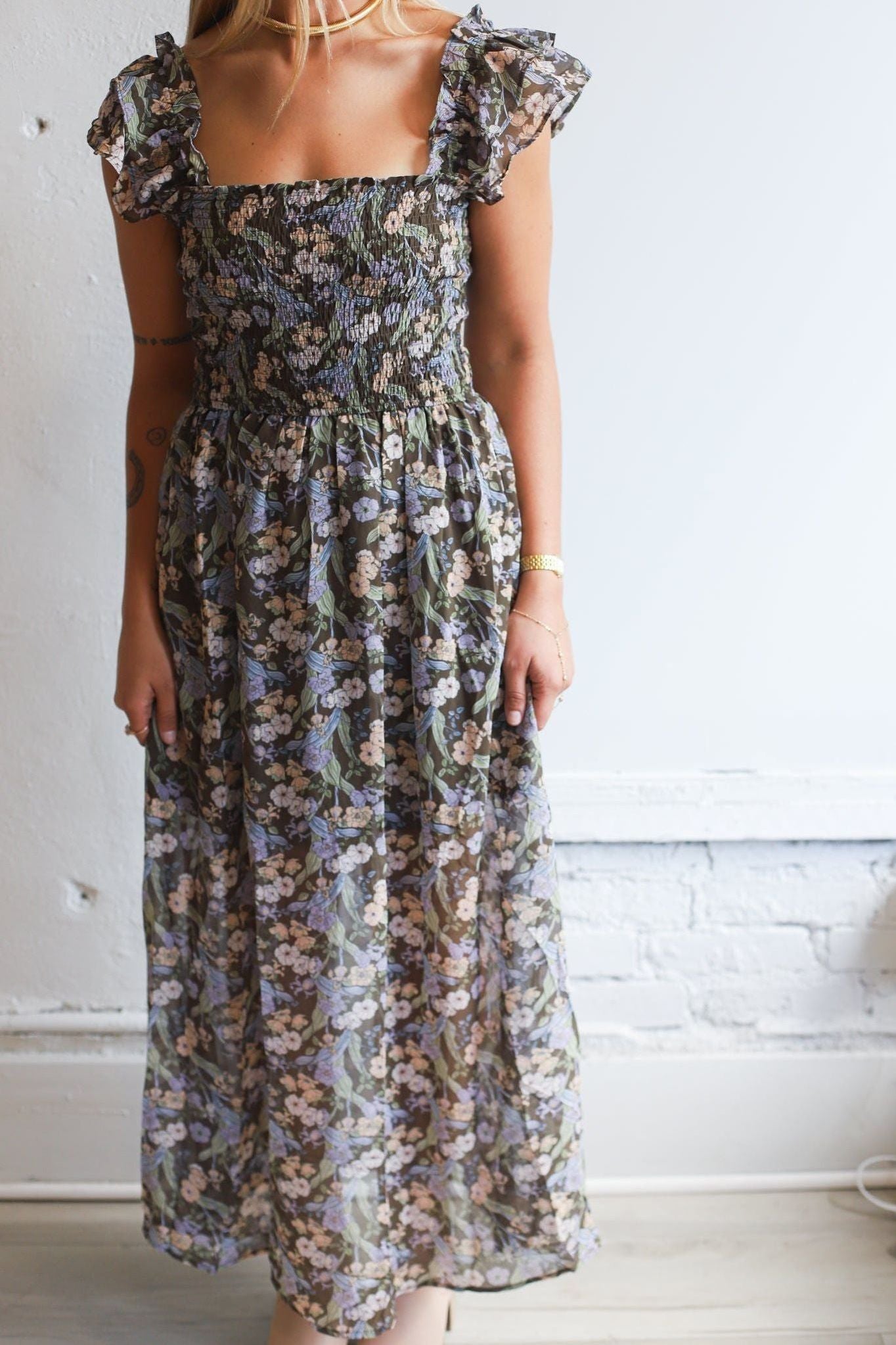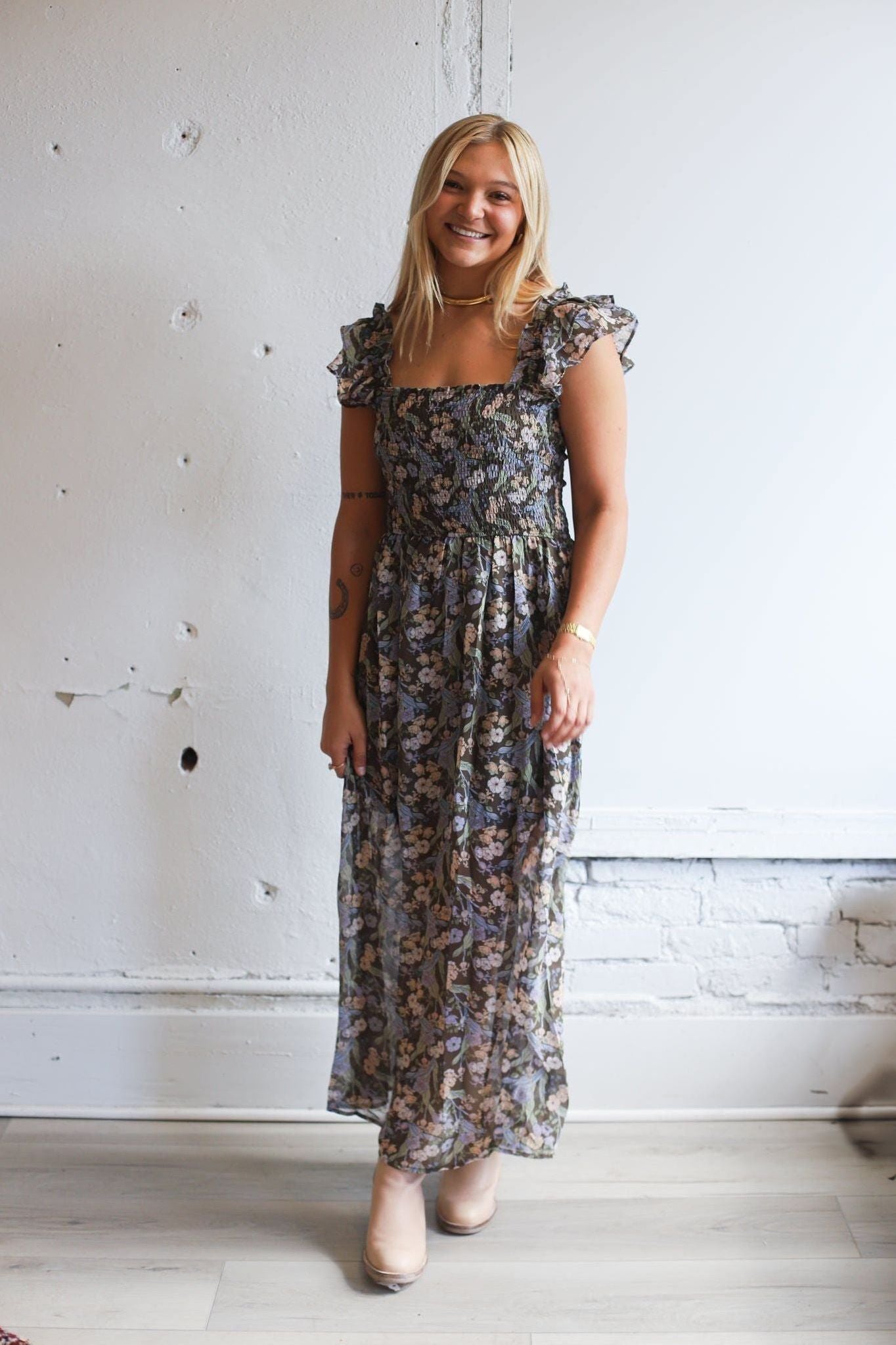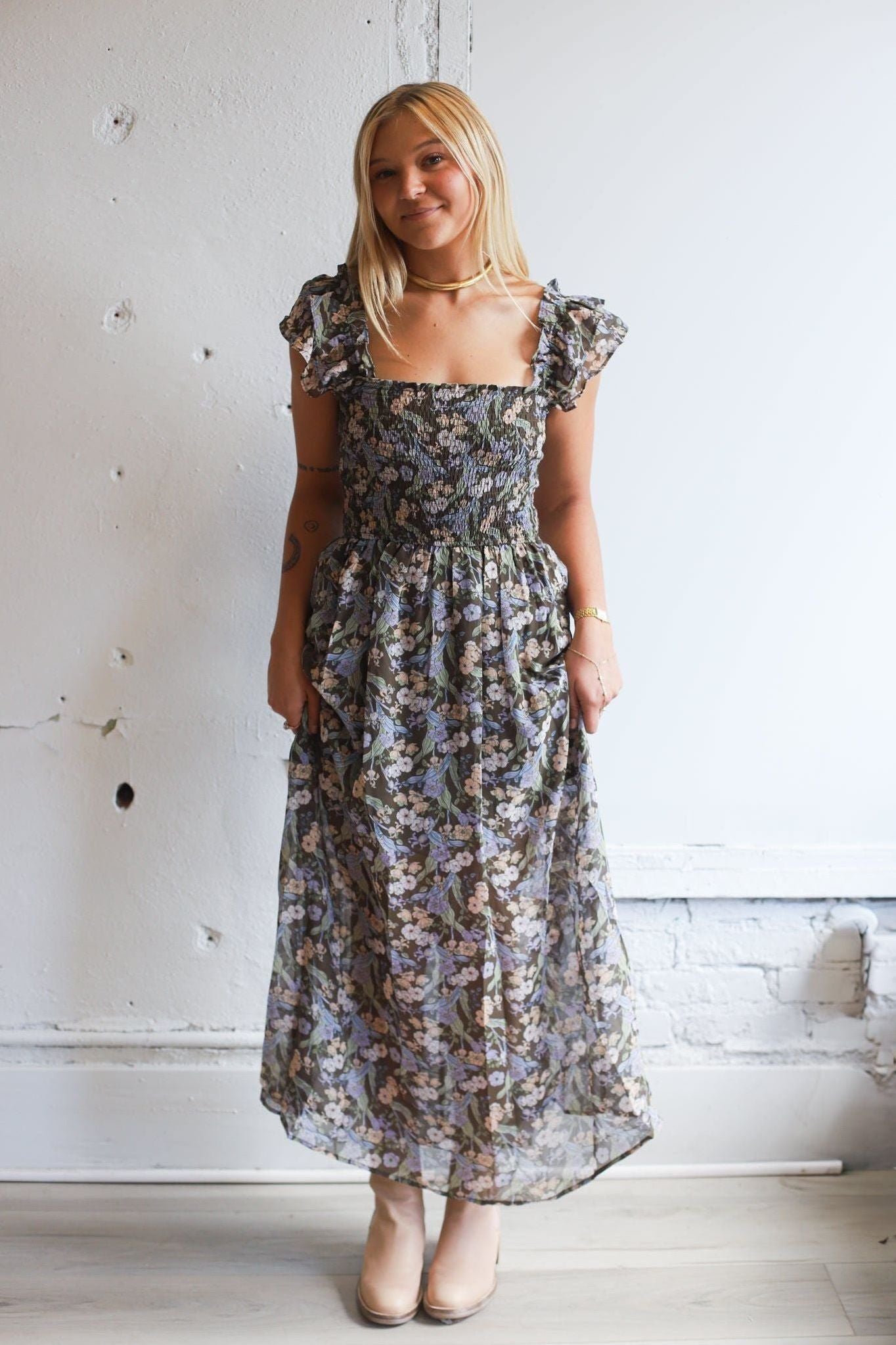 A floral-print satin maxi skirt with the following features: Bias-cut fabric. Elastic waist. Straight silhouette. Ankle length. Relaxed fit.