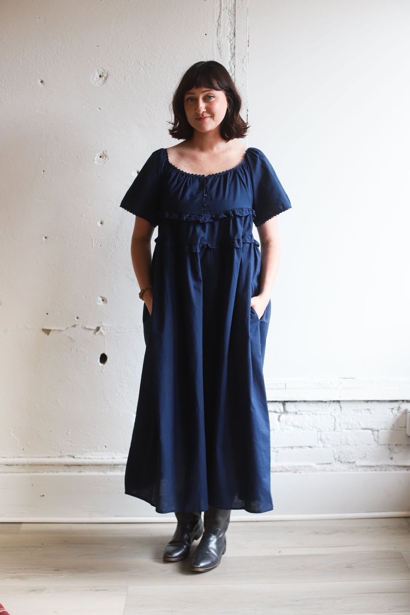 Made from premium denim fabric with summer-inspired embroidery details featuring smocked back panel for a comfortable, flexible fit and side pockets for practicality! Finished with an invisible back zipper!