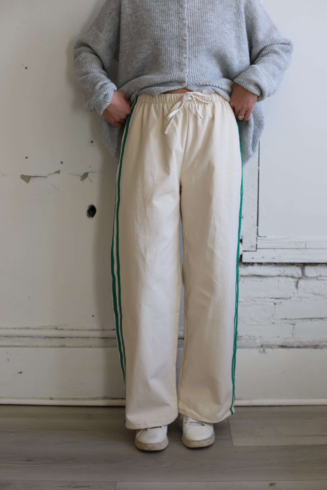 The Striped Wide-Leg Drawstring Track Pants offer a sporty yet stylish vibe perfect for laid-back days. Featuring bold side stripes and a relaxed wide-leg fit, these pants combine comfort with a streetwear-inspired edge. The adjustable drawstring waist ensures a secure and customizable fit, while the lightweight material keeps things breezy and breathable. Pair with sneakers and a cropped top for a cool, off-duty look that's effortlessly on trend.