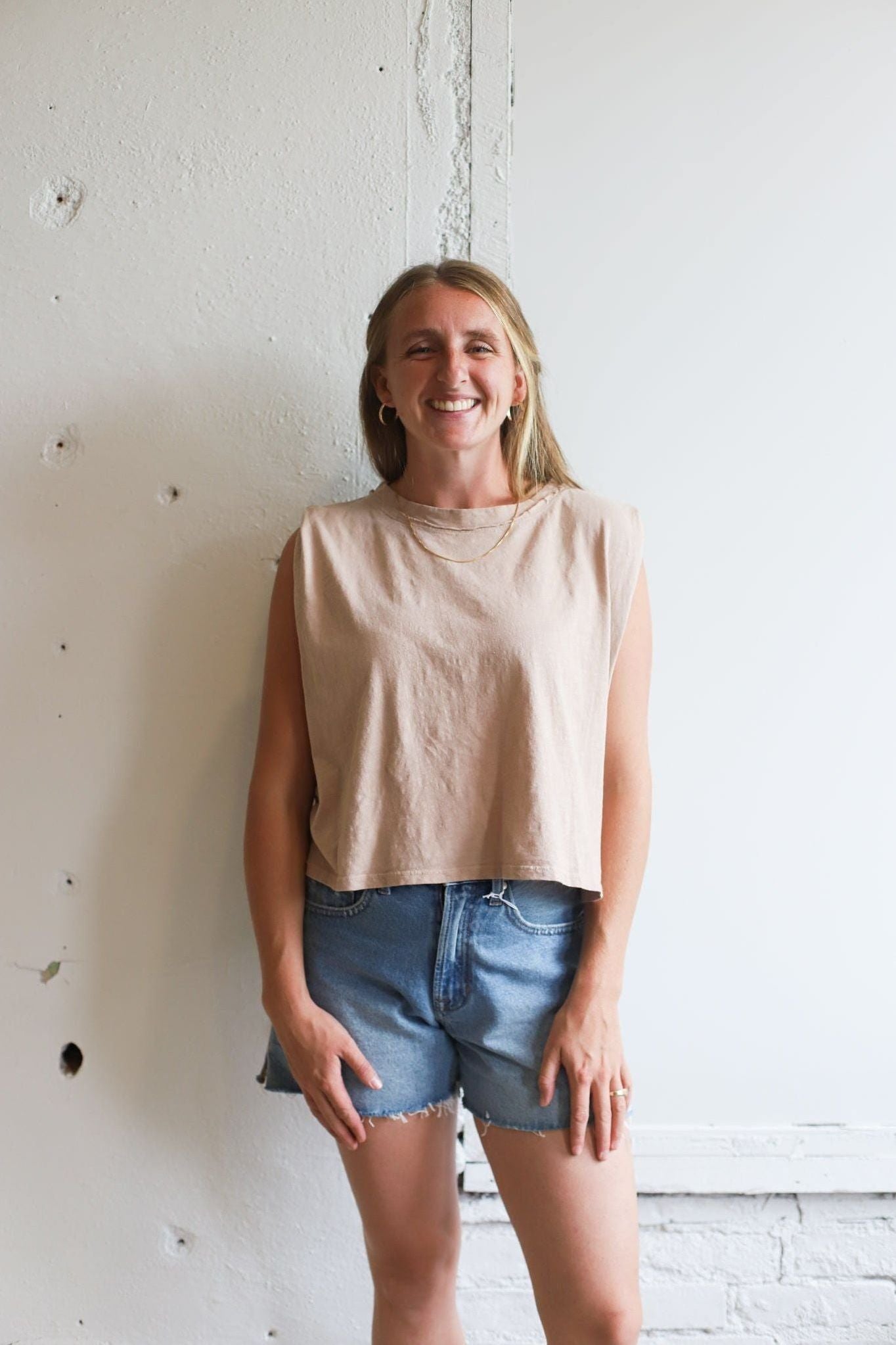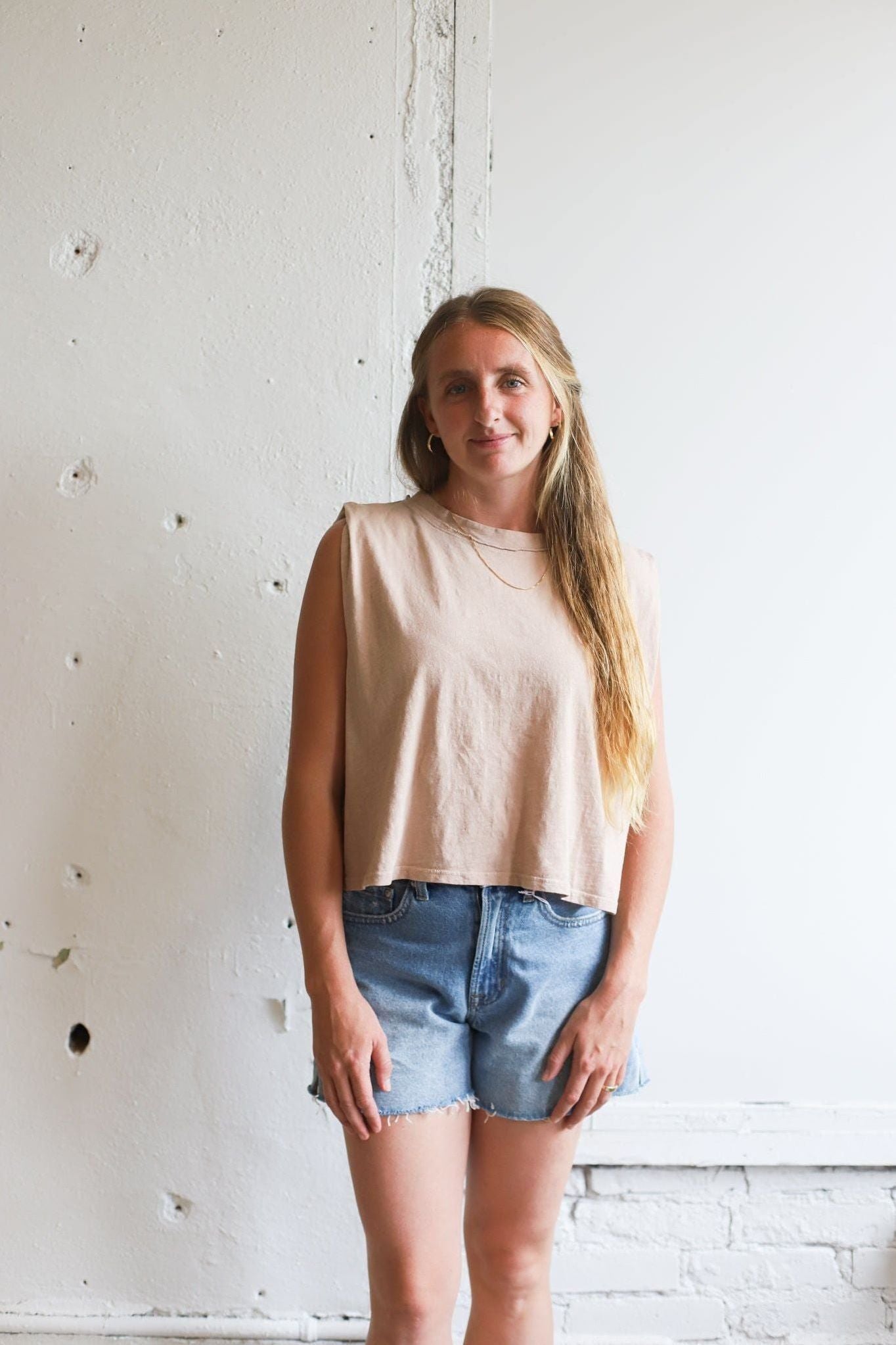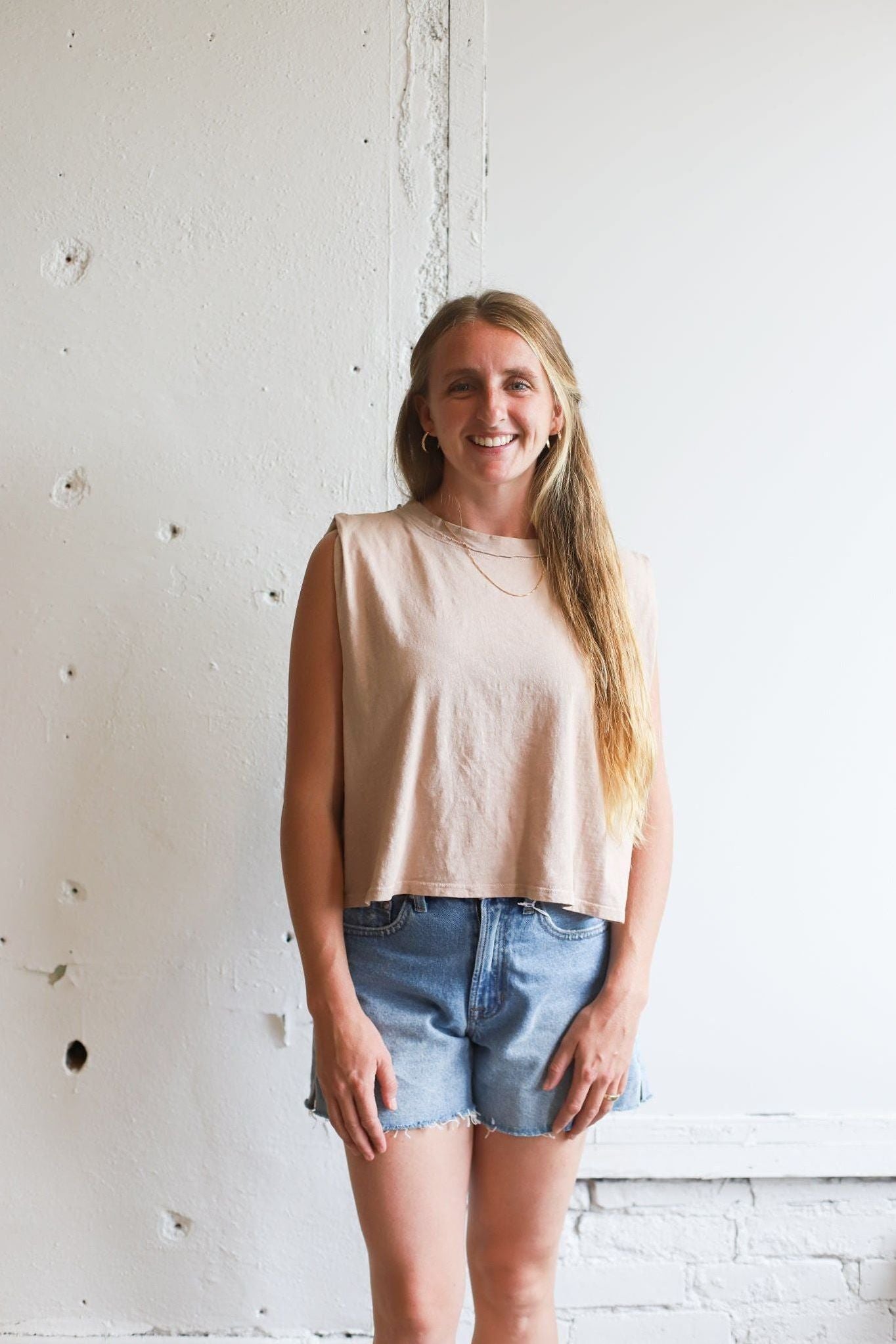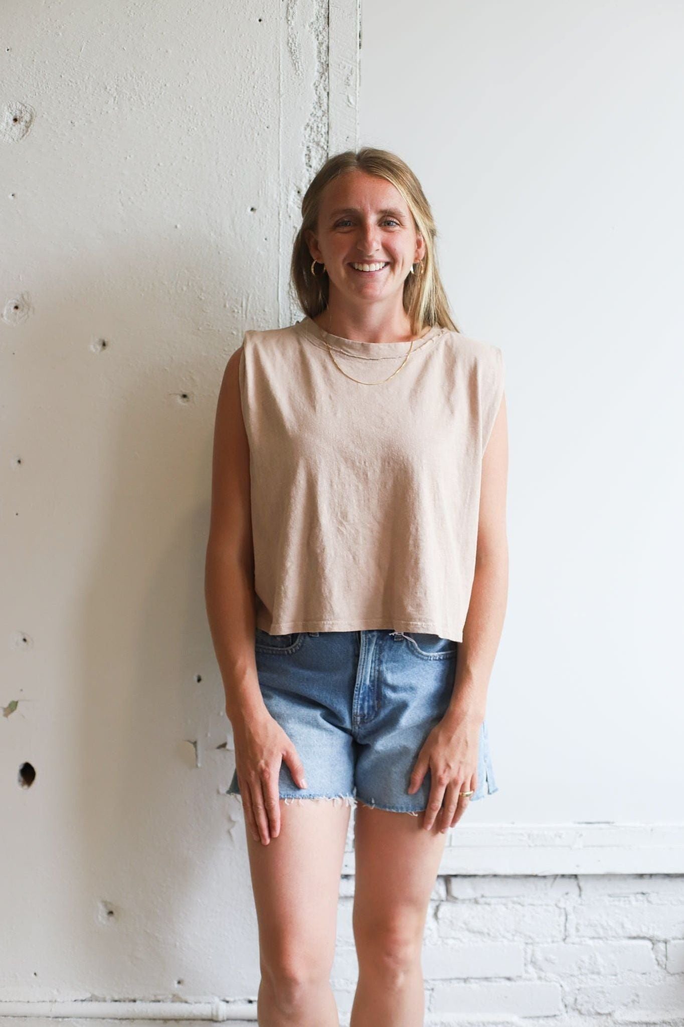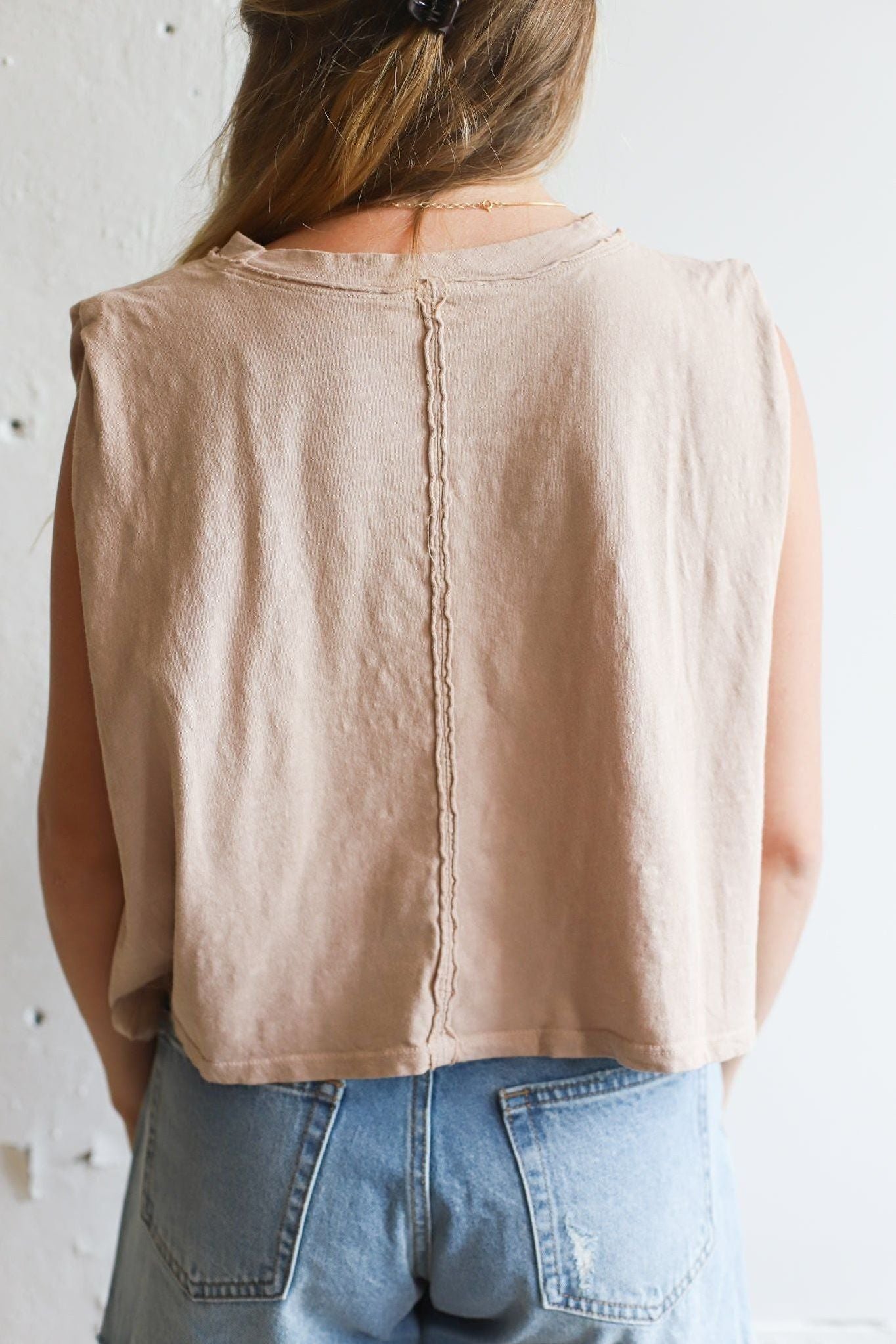 Knit Cotton Garment Dye Round Neck Sleeveless Tank Top! Perfect piece for layering or to wear on its own!