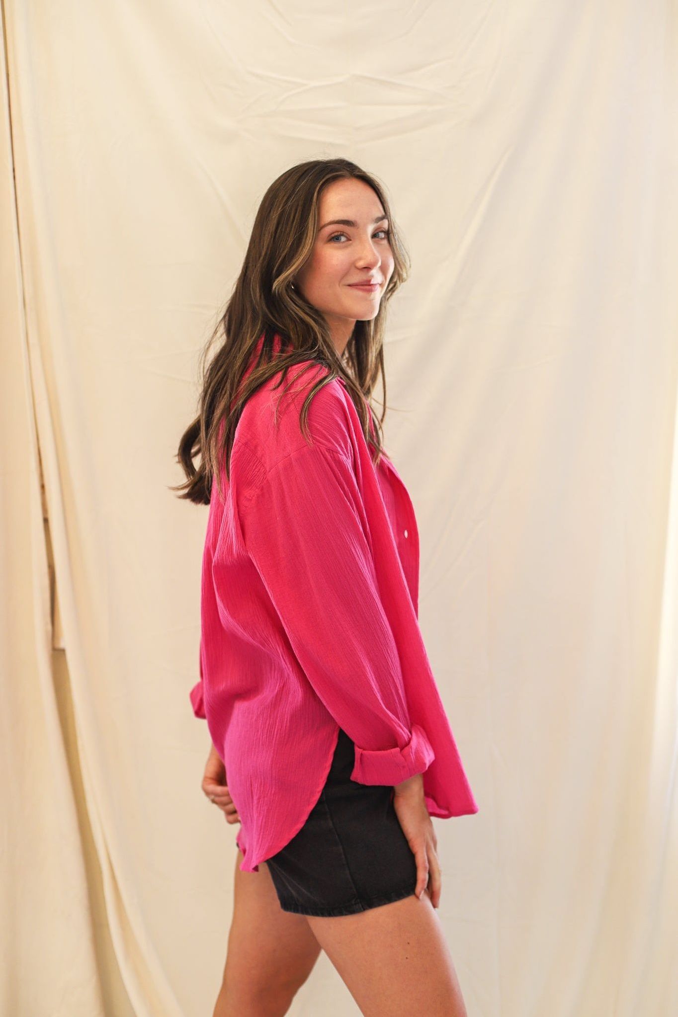 Pair this over your fave swimsuit or easy with a tank and shorts! Lightweight button up, guaze cotton and semi sheer