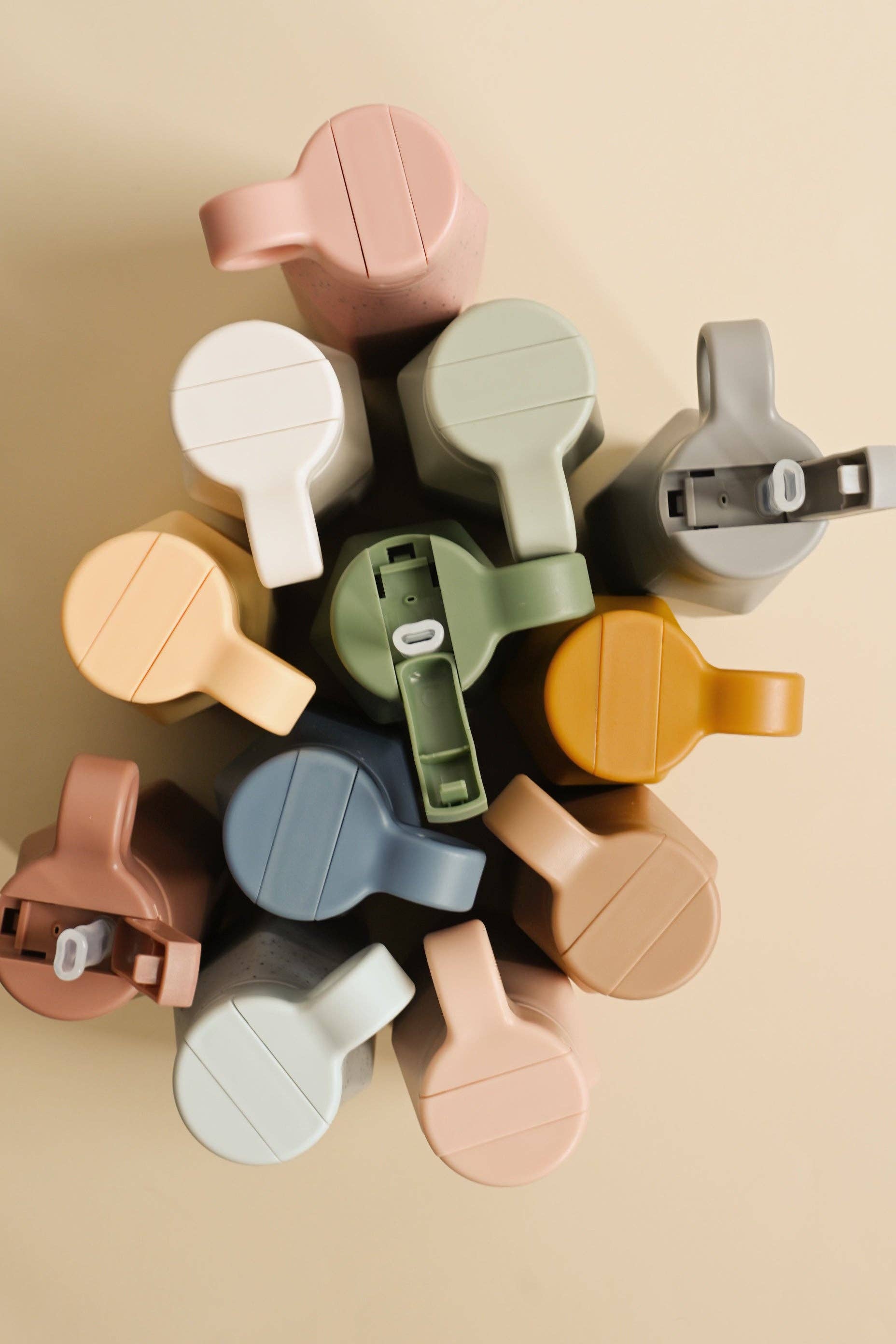 Silicone water bottle straw and pp lid. Food grade silicone. BPA free. Easy to wash in the dishwasher or with soap and damp cloth.