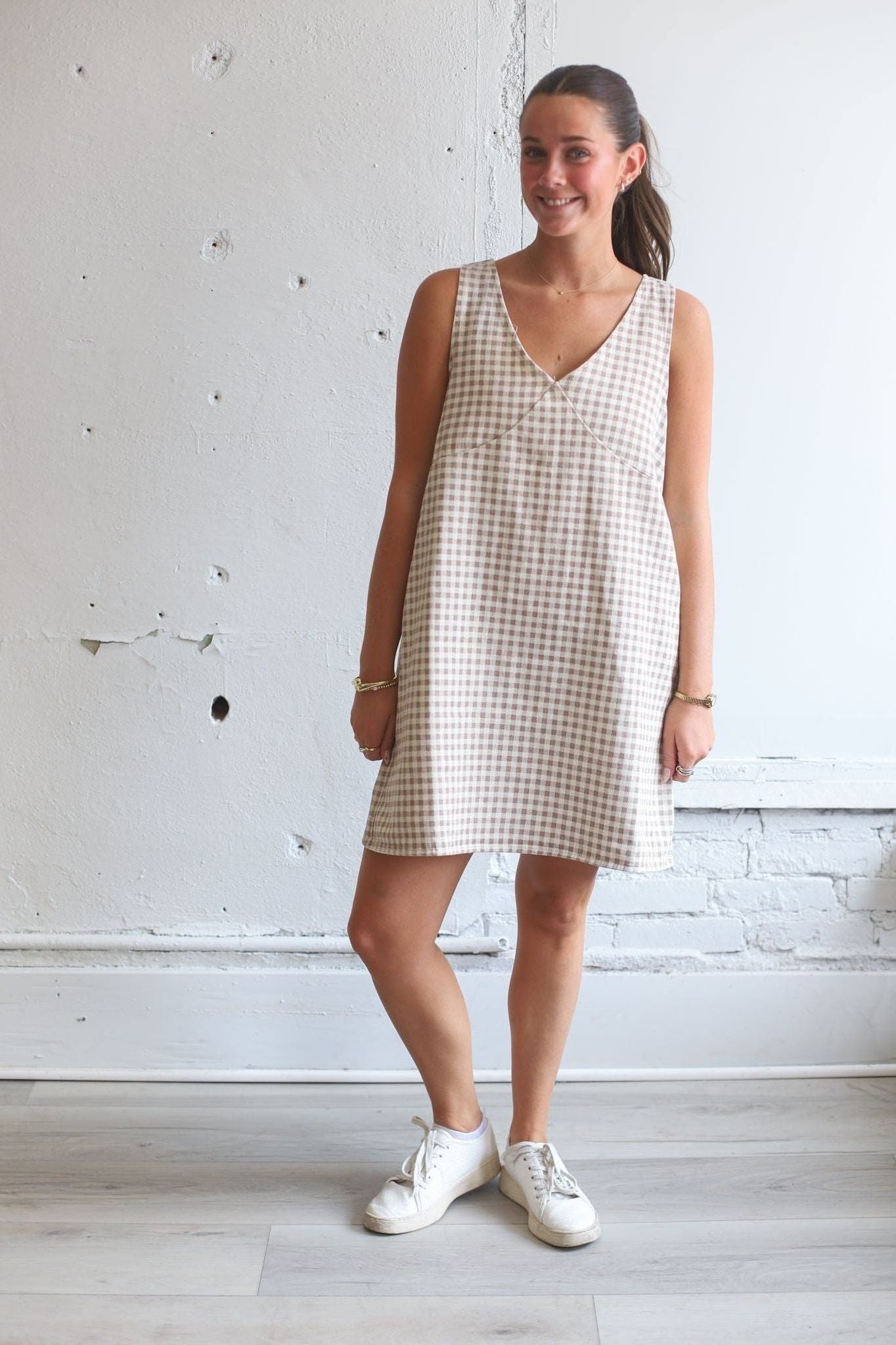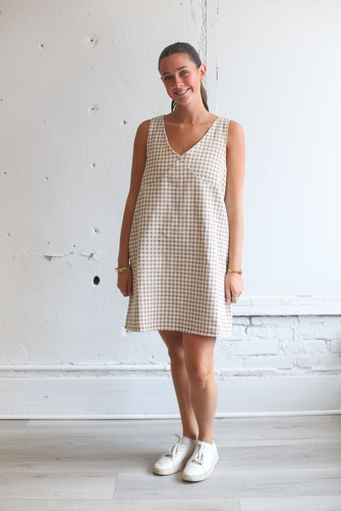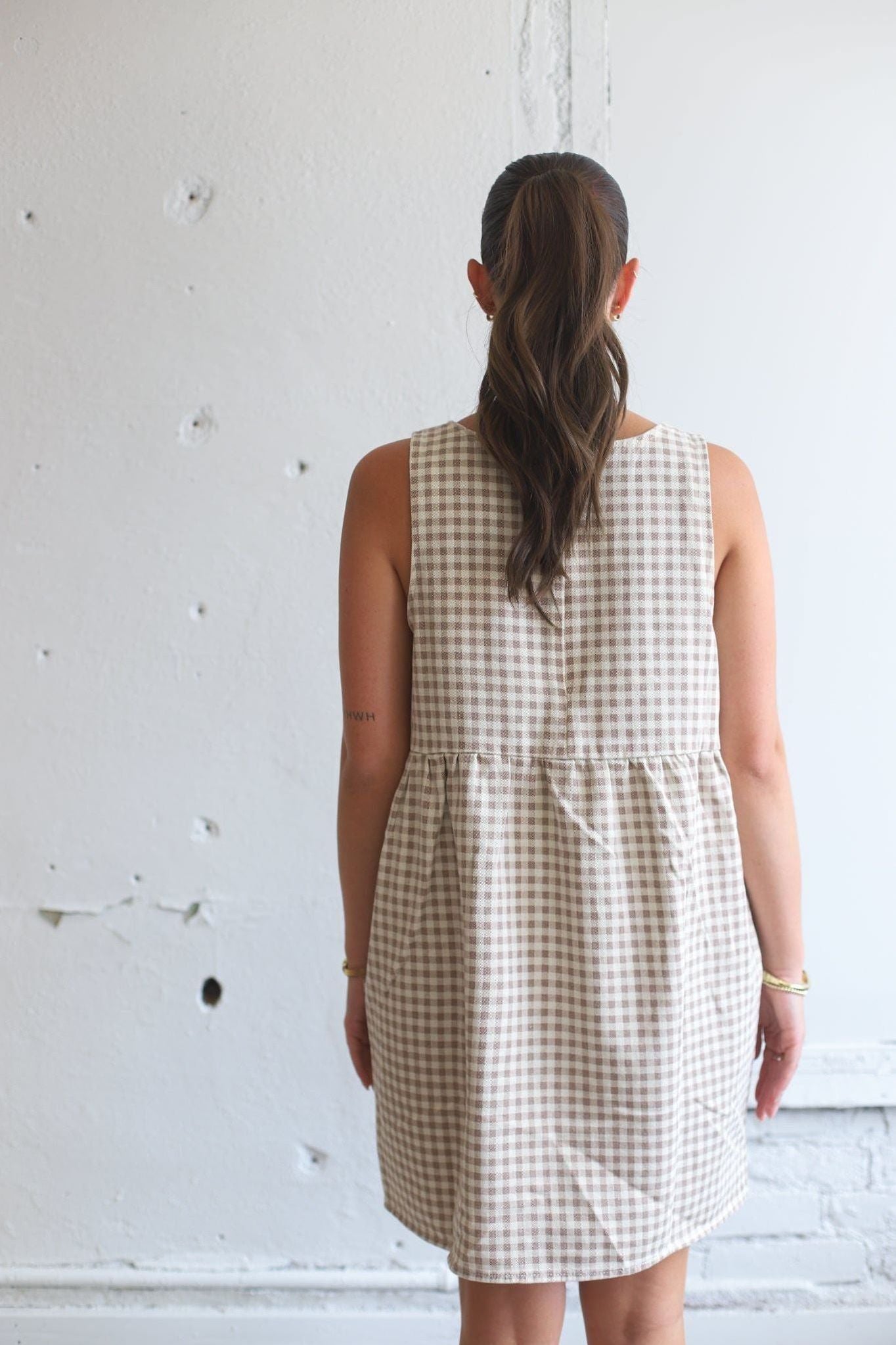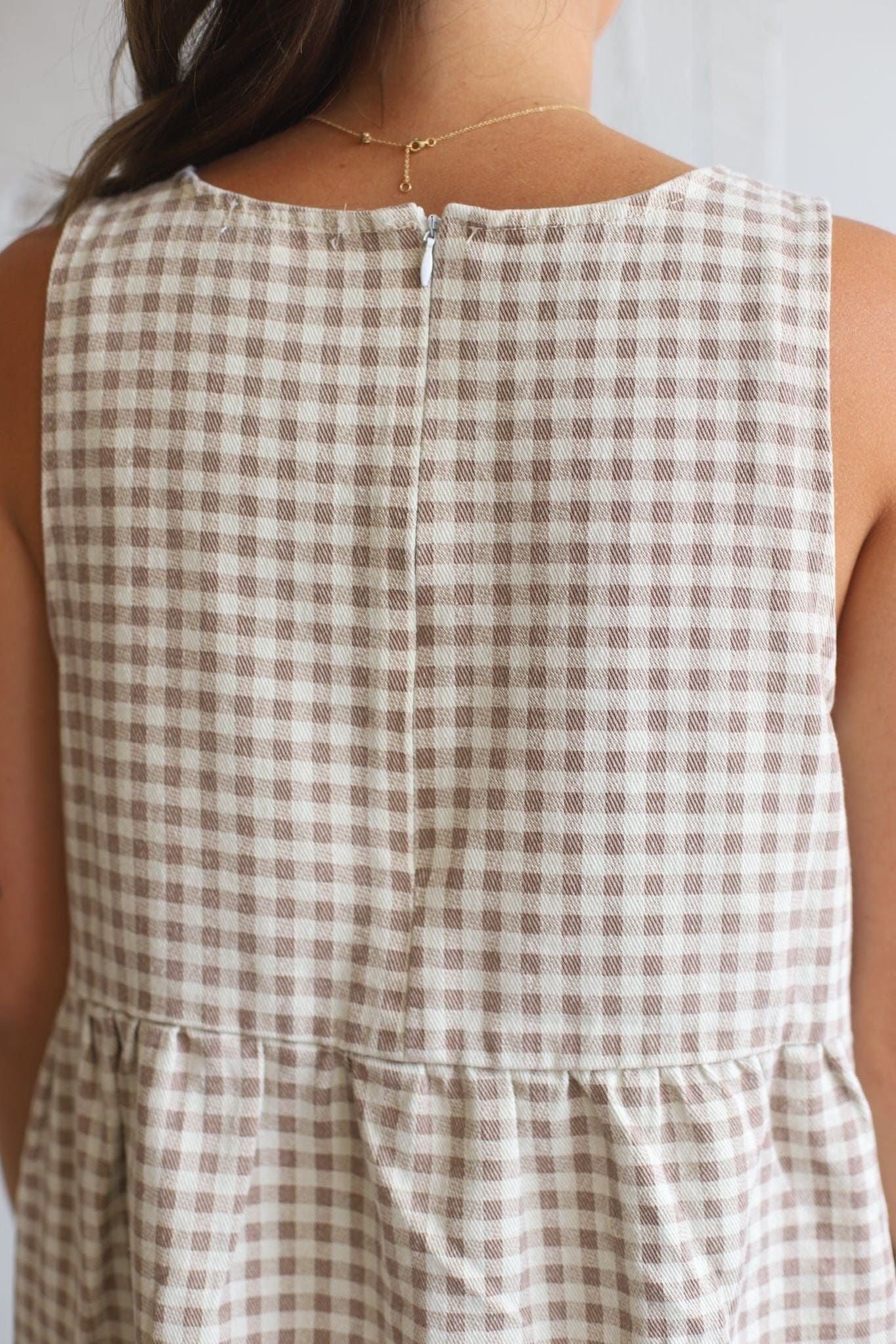 PLAID DENIM MINI DRESS ft. BACK ZIP CLOSURE, SLEEVELESS, EASY, CASUAL, FALL OUTFIT, LAYERING, LOOSE AND COMFORTABLE