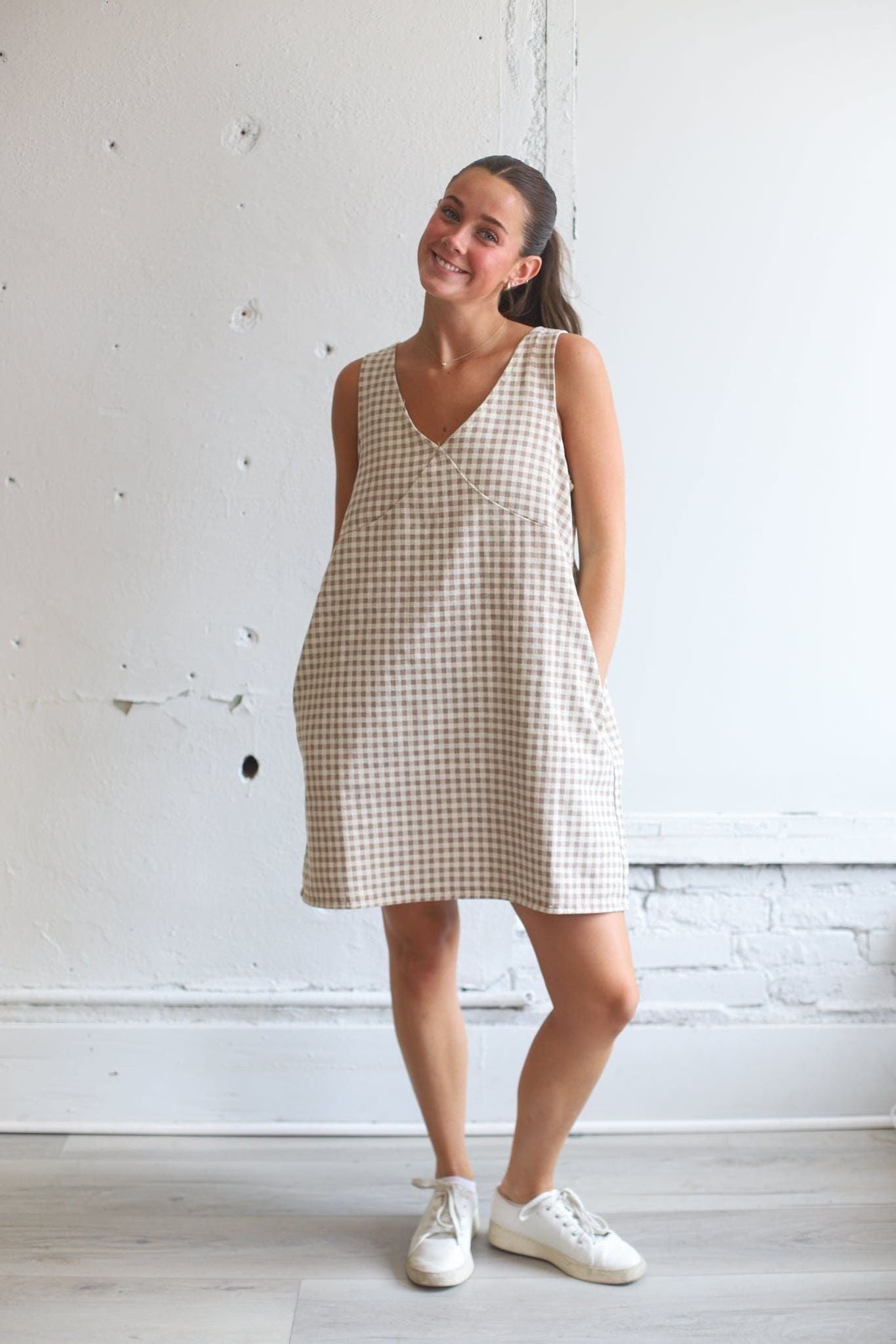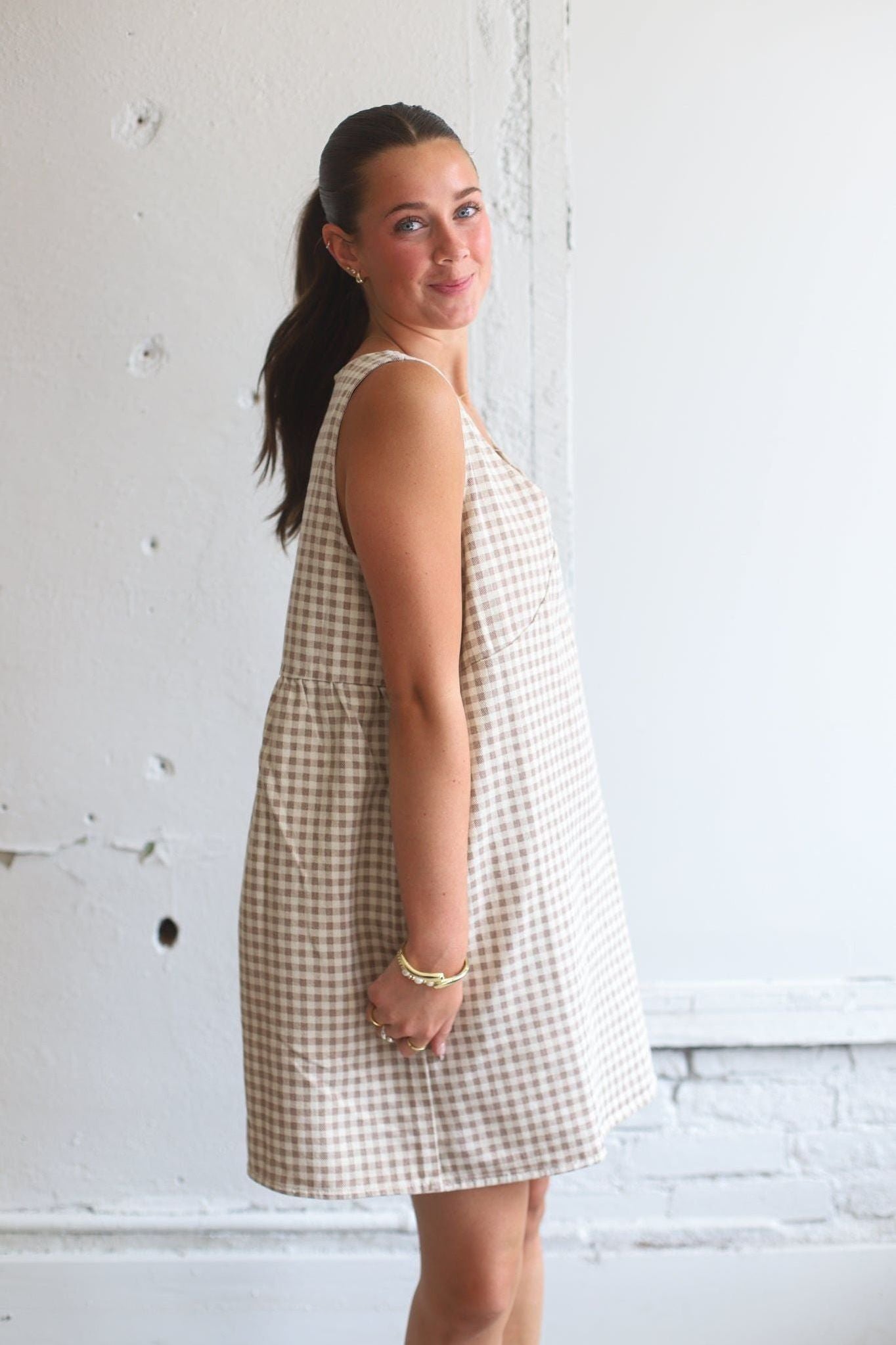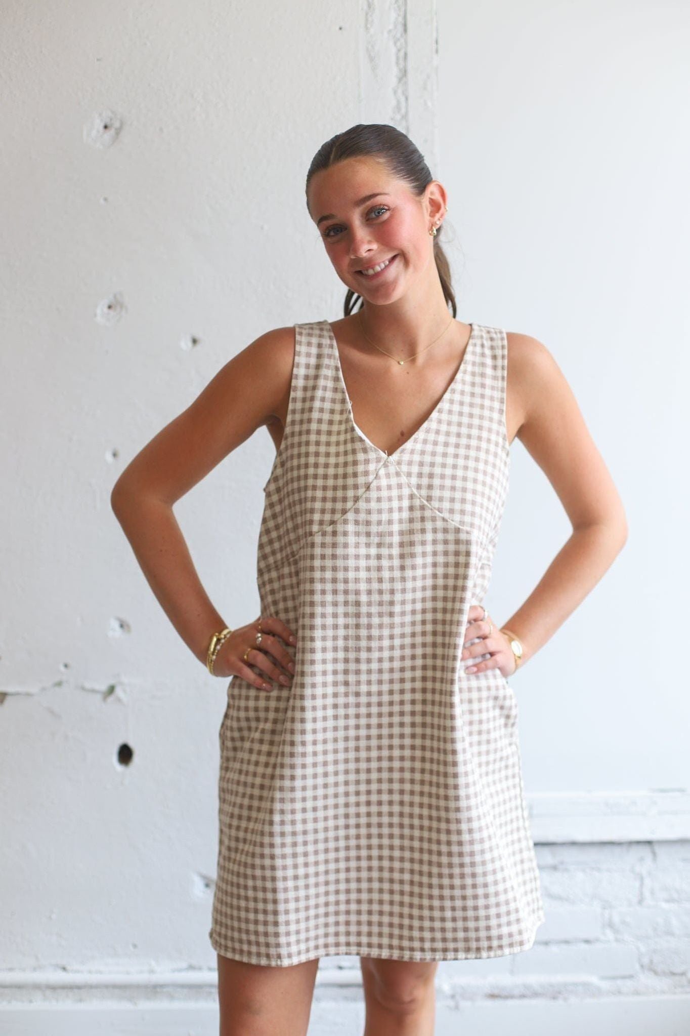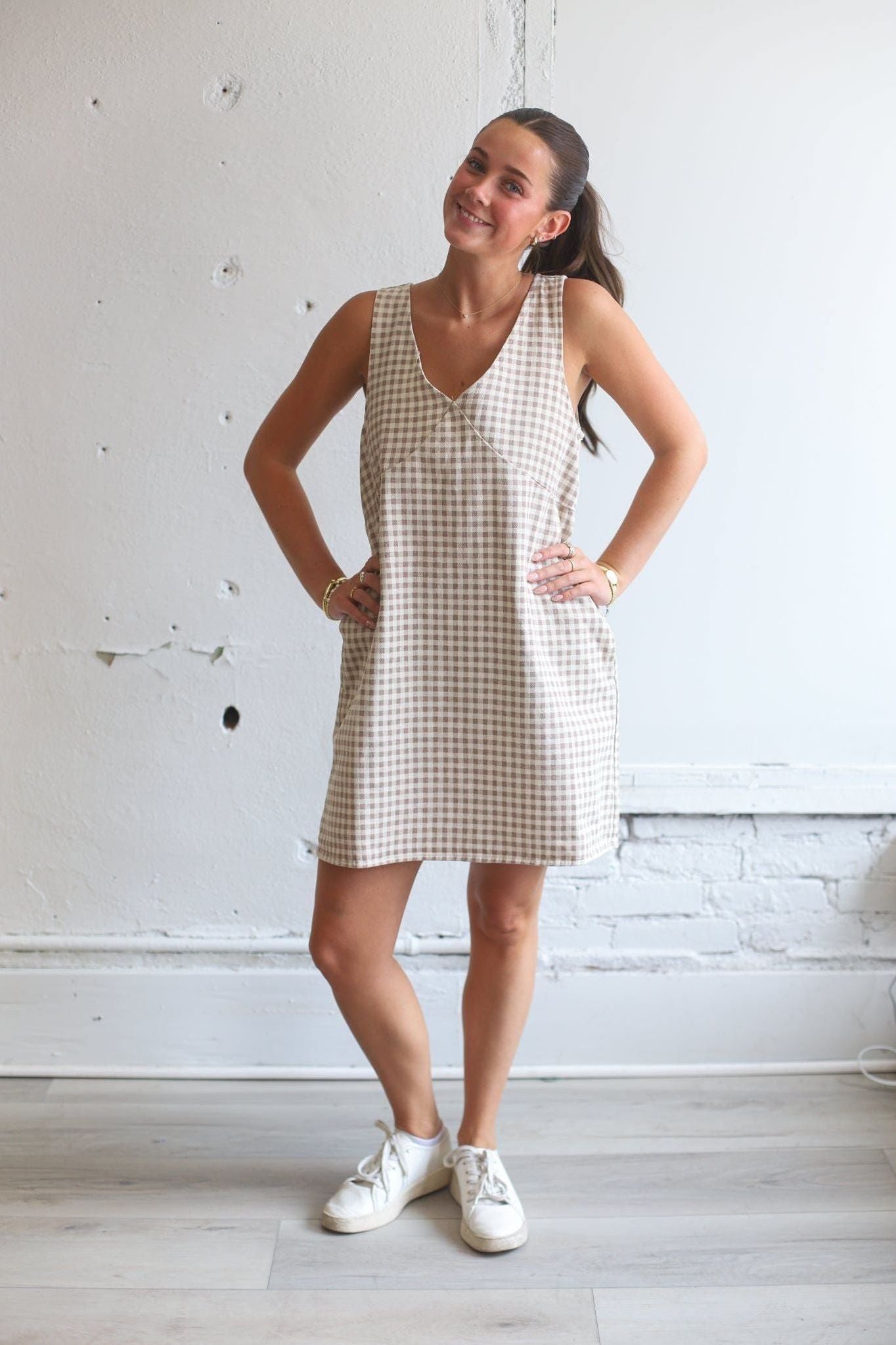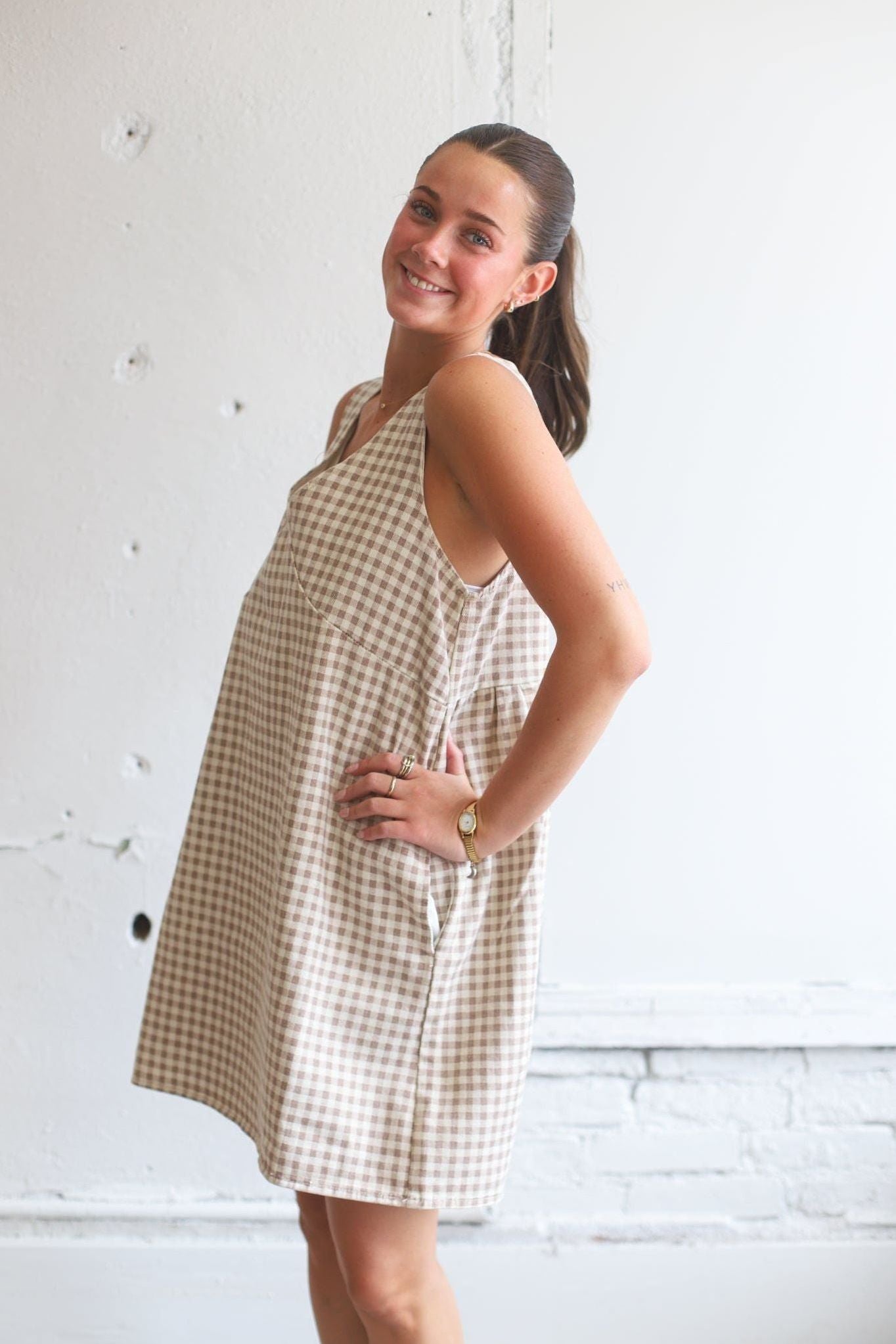 PLAID DENIM MINI DRESS ft. BACK ZIP CLOSURE, SLEEVELESS, EASY, CASUAL, FALL OUTFIT, LAYERING, LOOSE AND COMFORTABLE